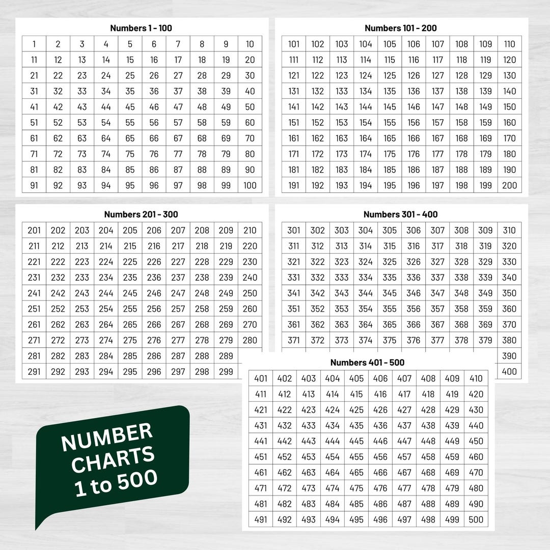 Number Charts 1 500 Printables Teacher Classroom Homeschool Resource digital Download Etsy