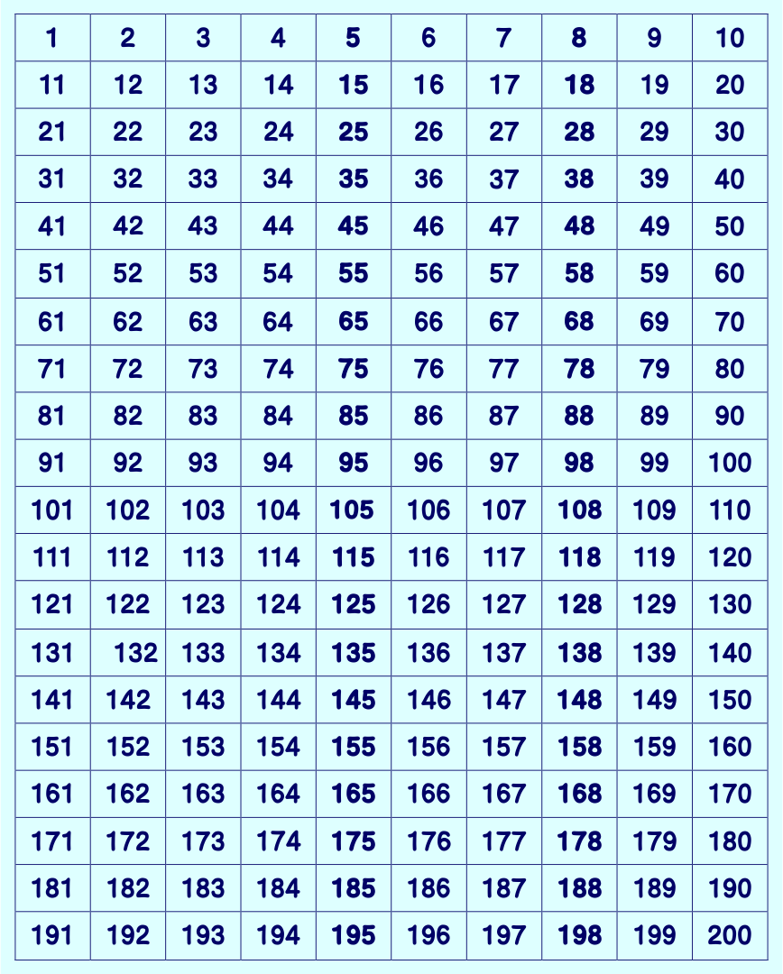 200s Chart Printable