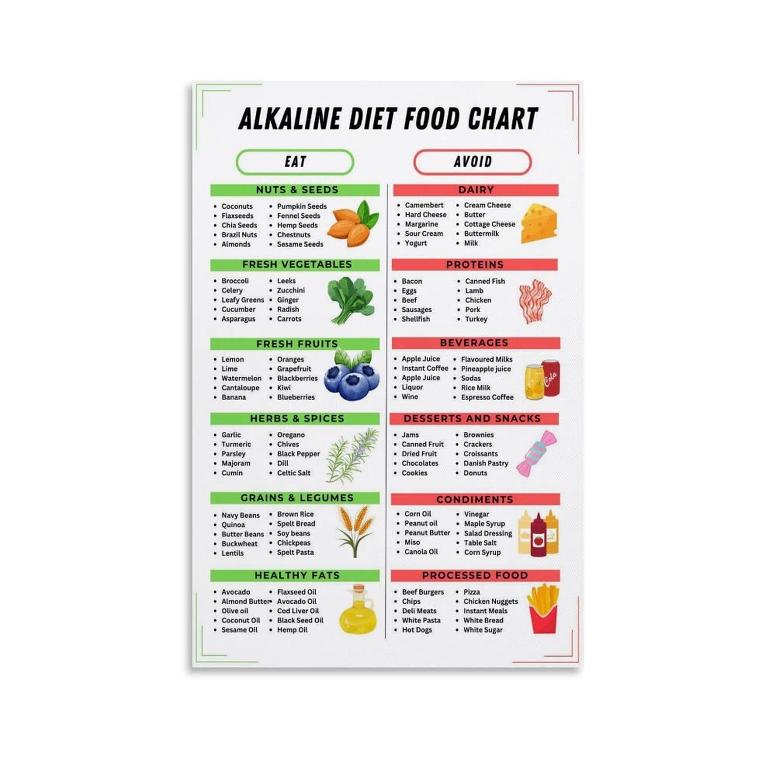 Amazon LGDSBHH Alkaline Diet Balance Sheet PH Food Chart Poster Style 6 12x18inch 30x45cm