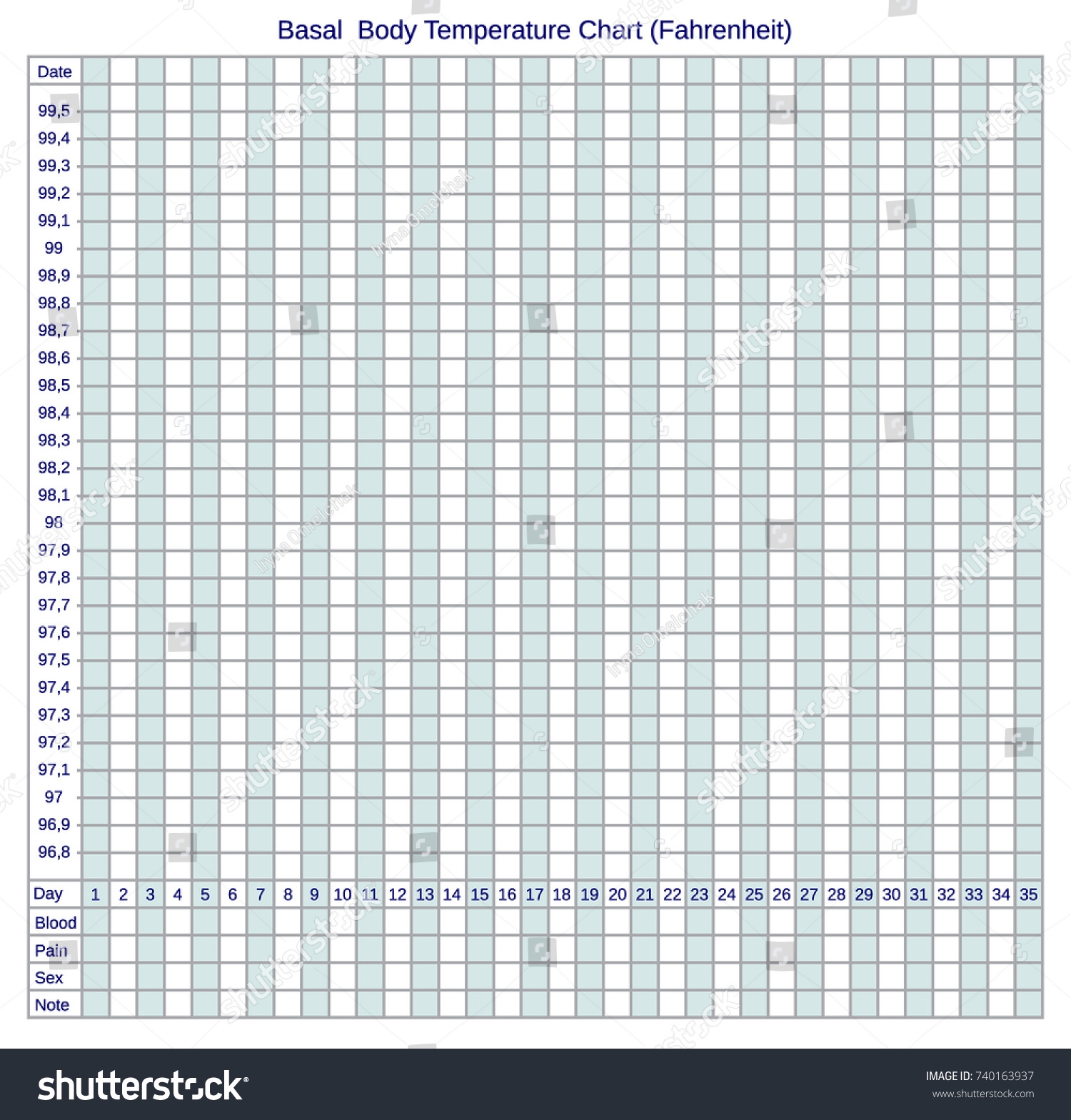 Basal Body Temperature Chart Fahrenheit Schedule Stock Vector Royalty Free 740163937 Shutterstock