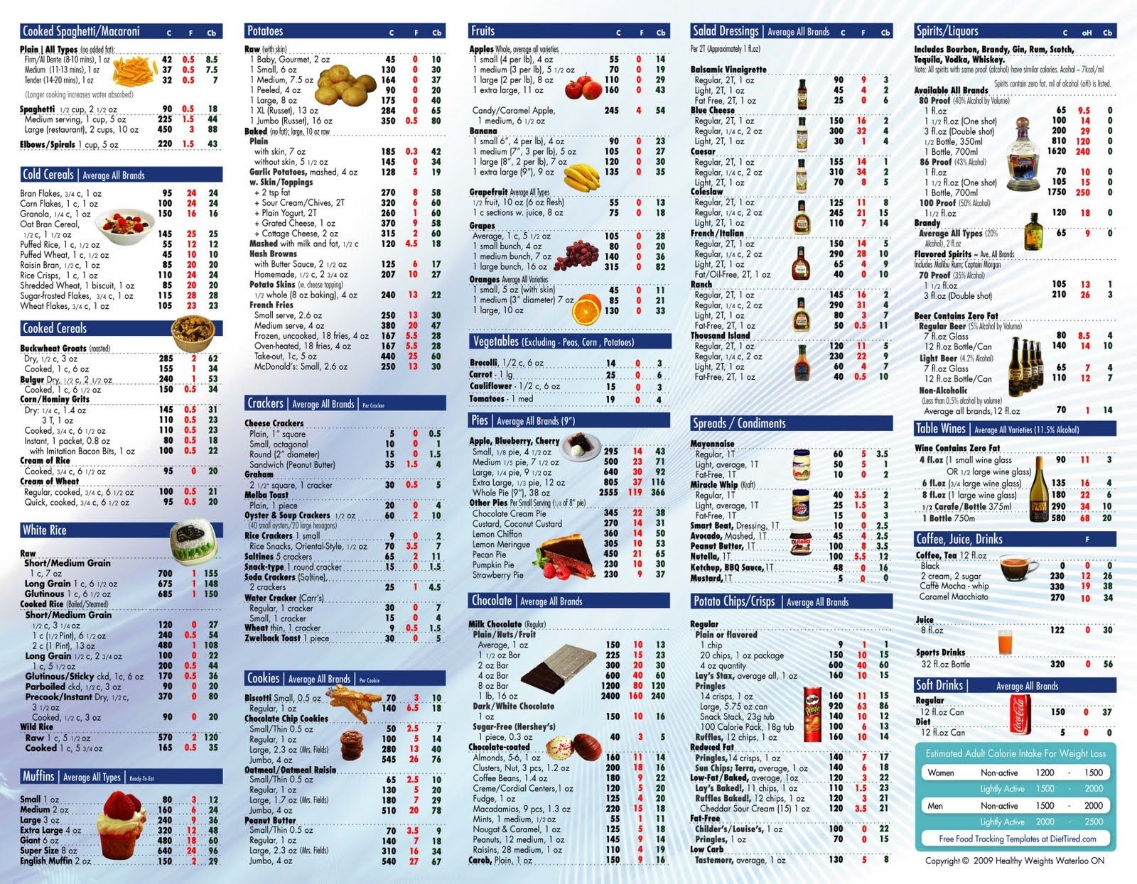 Calorie Food Chart Printable