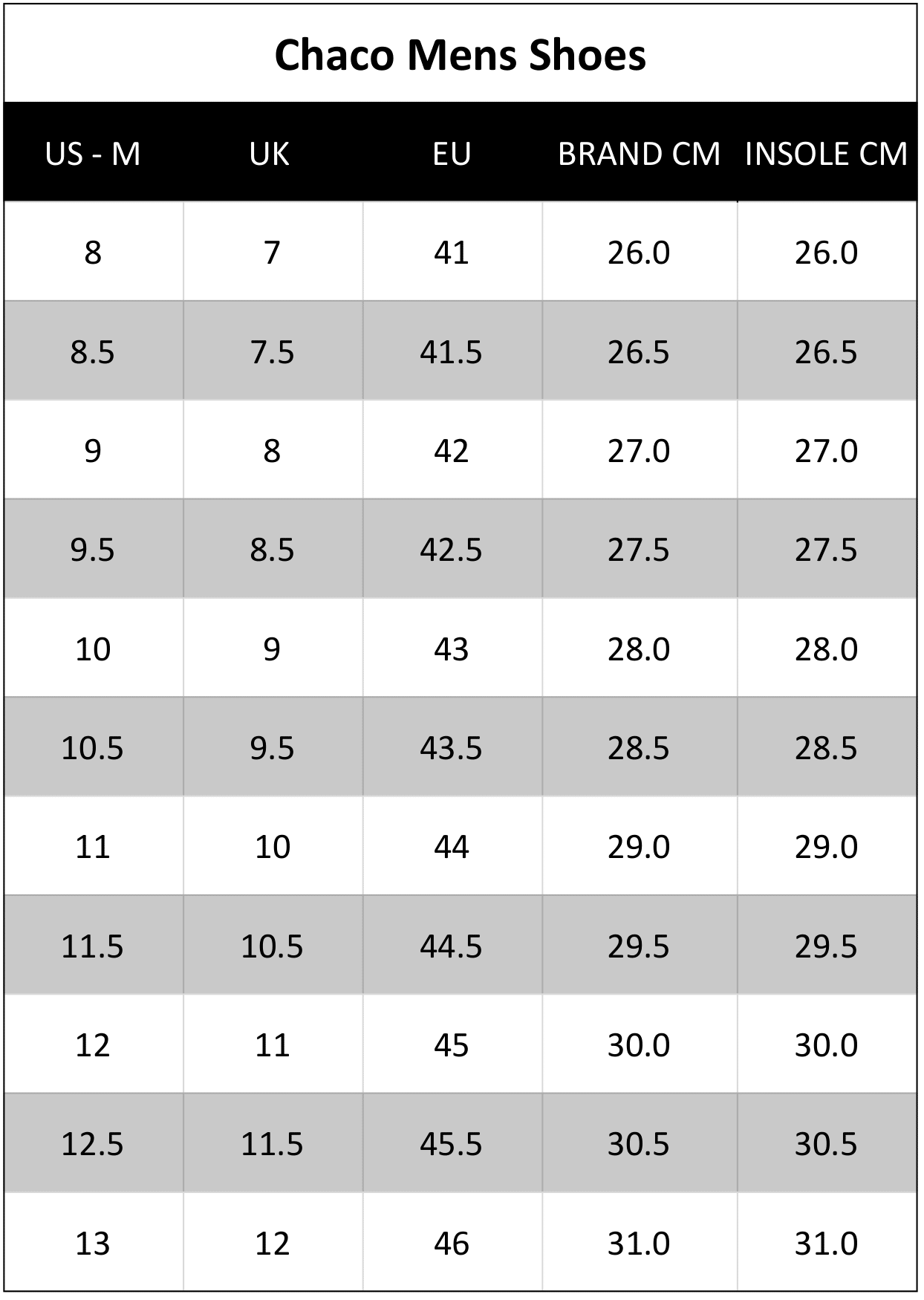 Shoe Size Guide Chaco Sizing For Half Sizes Chaco Size Chart Fitting Chacos Chaco Mens Z