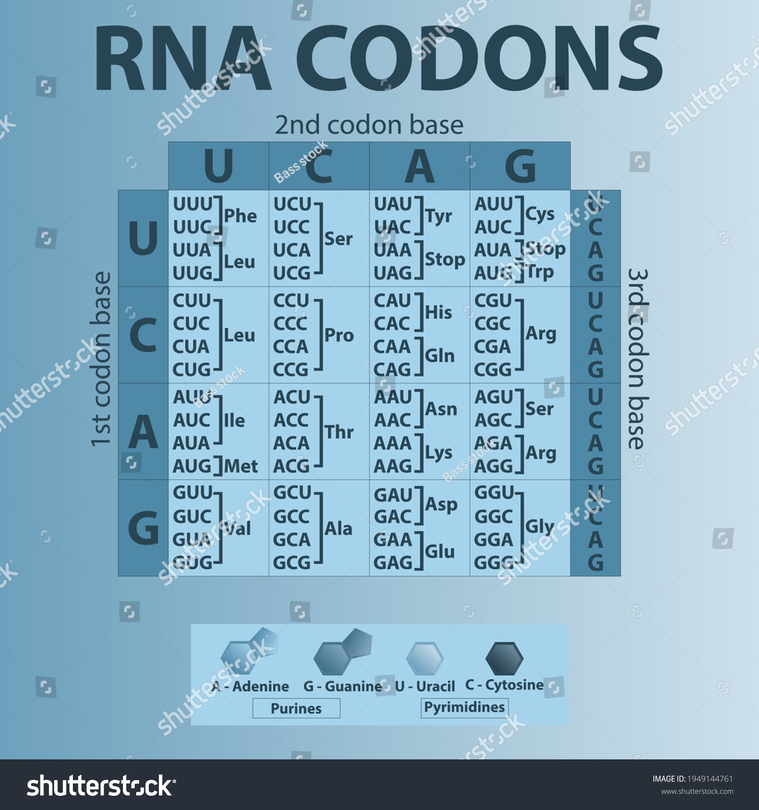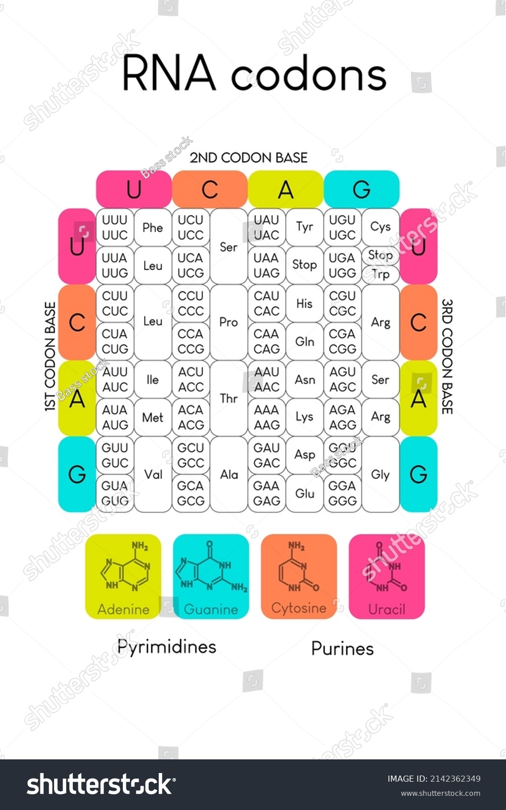 Table Rna Codons Genetic Biological Code Stock Vector Royalty Free 2142362349 Shutterstock