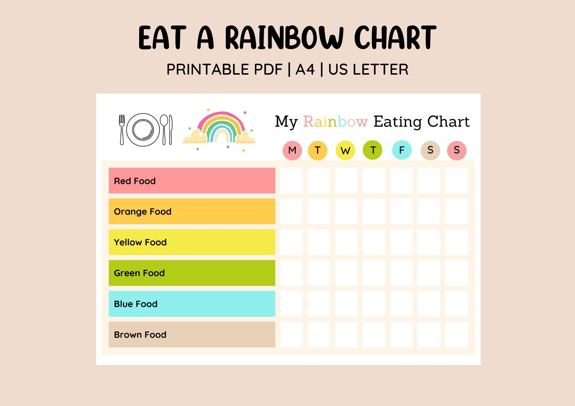 Eat The Rainbow Childrens Healthy Eating Reward Chart Kids Track Fruit U0026 Veg Vegetables Fun Health Food Challenge Diary Planner Printable Etsy