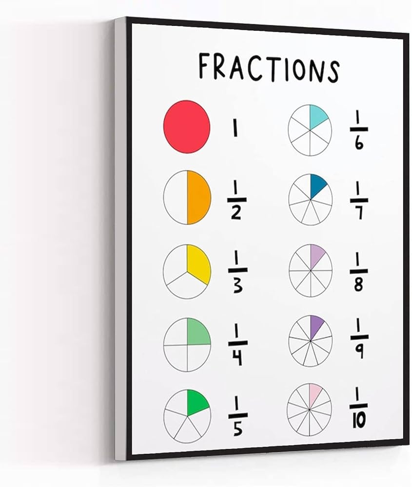 Amazon Math Poster Fractions Chart Fractions Poster Homeschool Printable Fractions Printable Homeschool Decor Homeschool Printable Kids Baby Girl Nursery Wall Art 8X12 Inch Framed Modern Canvas Wall Art Posters Prints
