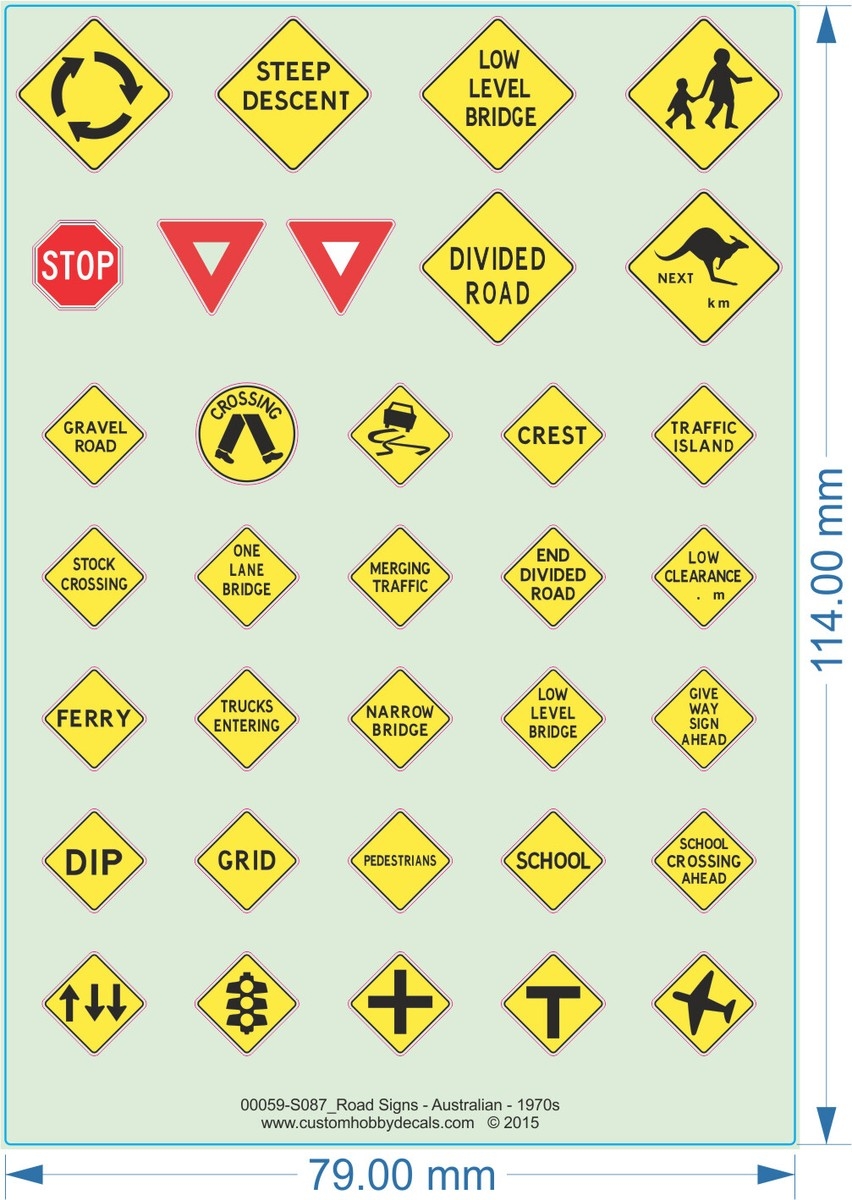 Road Signs Australian 1970s HO 1 87 N 1 160 Water Decal