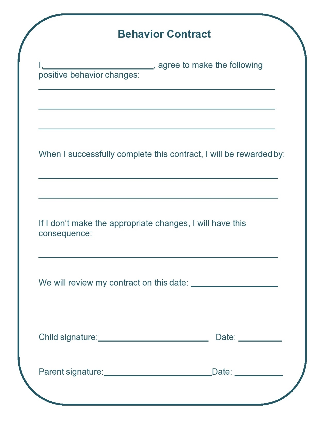28 Turnkey Behavior Contract Templates To Open The Door To Better Behavior Limened