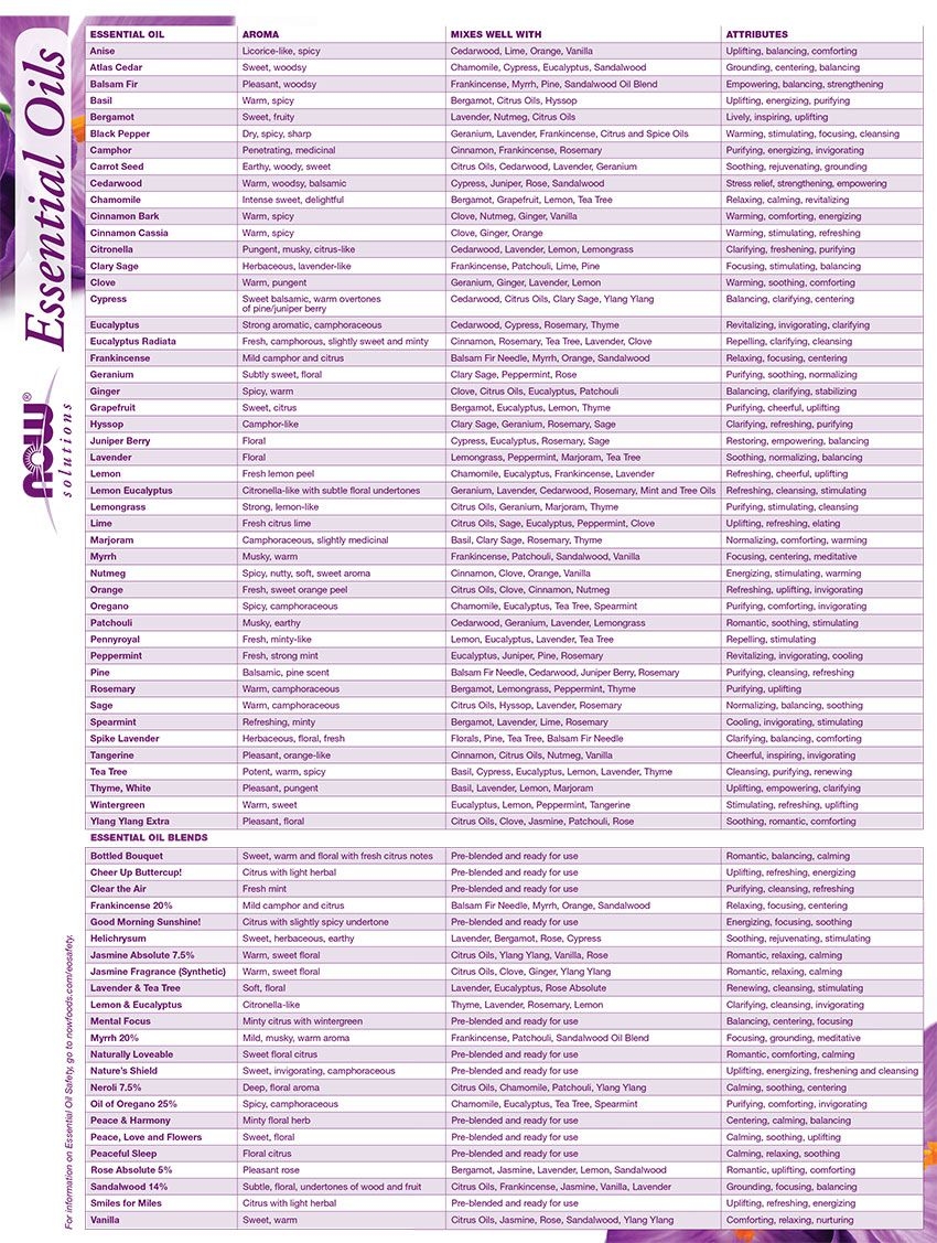 Essential Oil Chart Worksheets Library