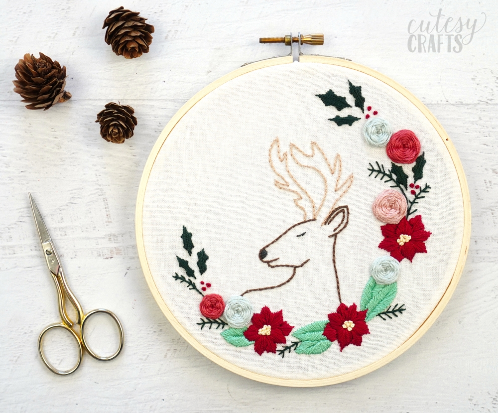 Free Christmas Deer Embroidery Pattern Cutesy Crafts