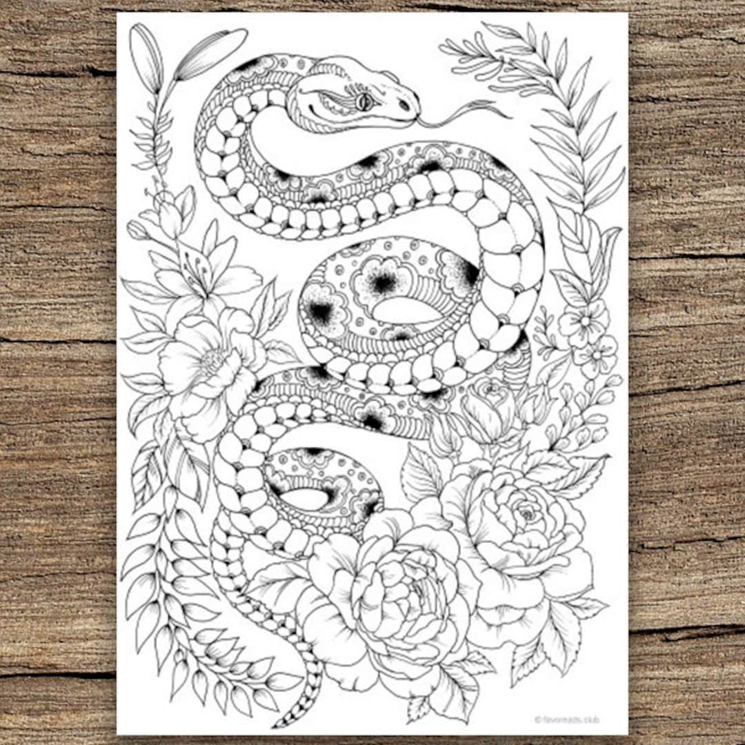 Snake Printable Adult Coloring Page From Favoreads coloring Book Pages For Adults And Kids Coloring Sheets Colouring Designs Etsy UK