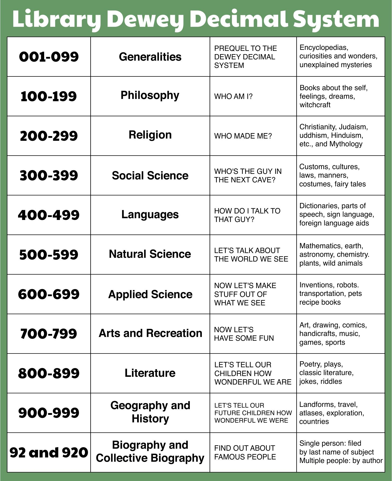 But what if you could have a handy reference chart that breaks down the Dewey Decimal System for easy access? Well, you’re in luck because we have a