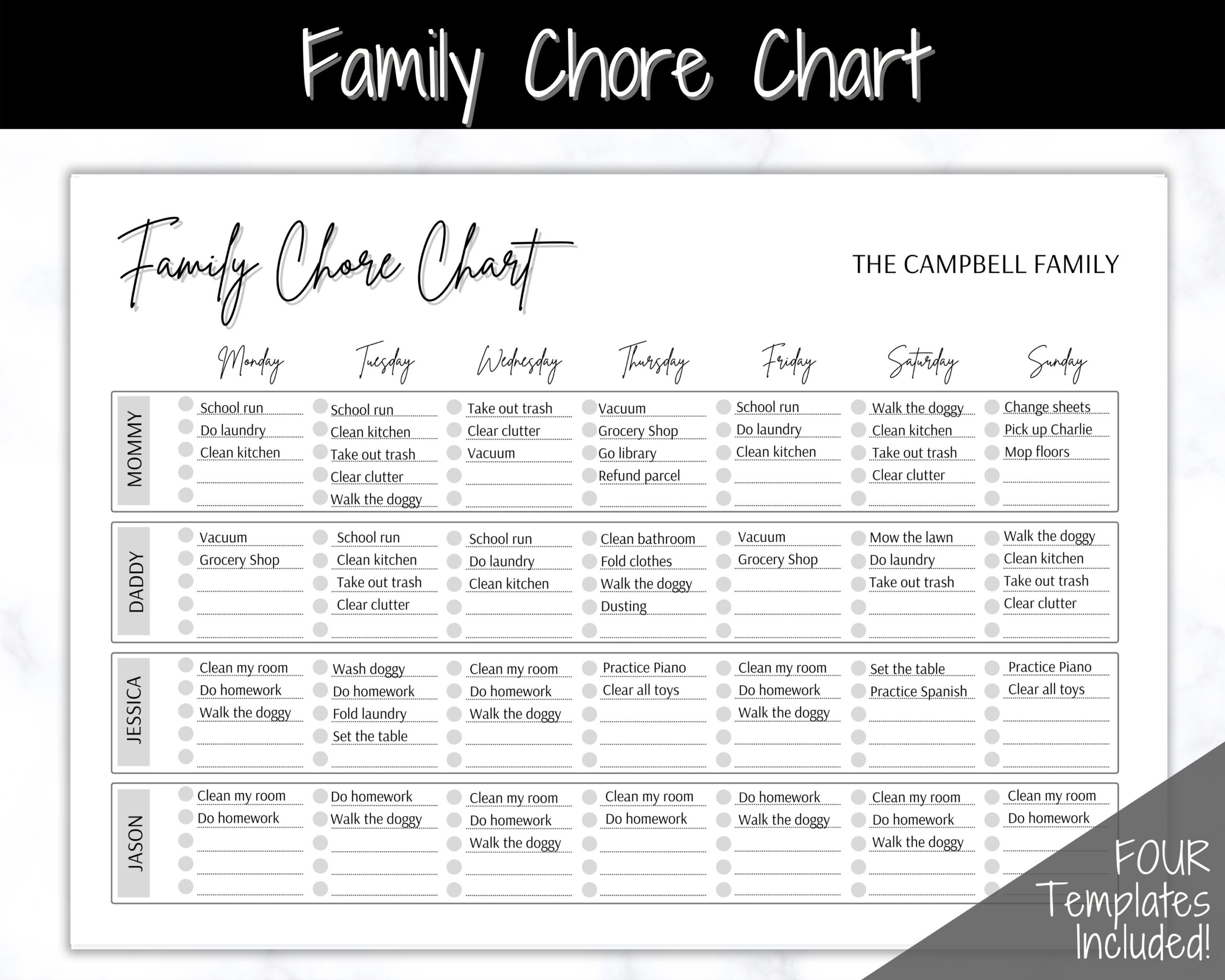 Whether you prefer a weekly, bi-weekly, or monthly chore chart, finding a system that works for your family is key. Experiment with different layouts and designs until you find one that fits your needs and keeps everyone motivated.