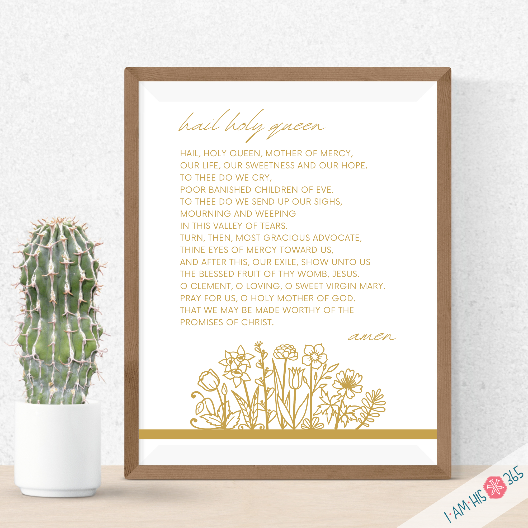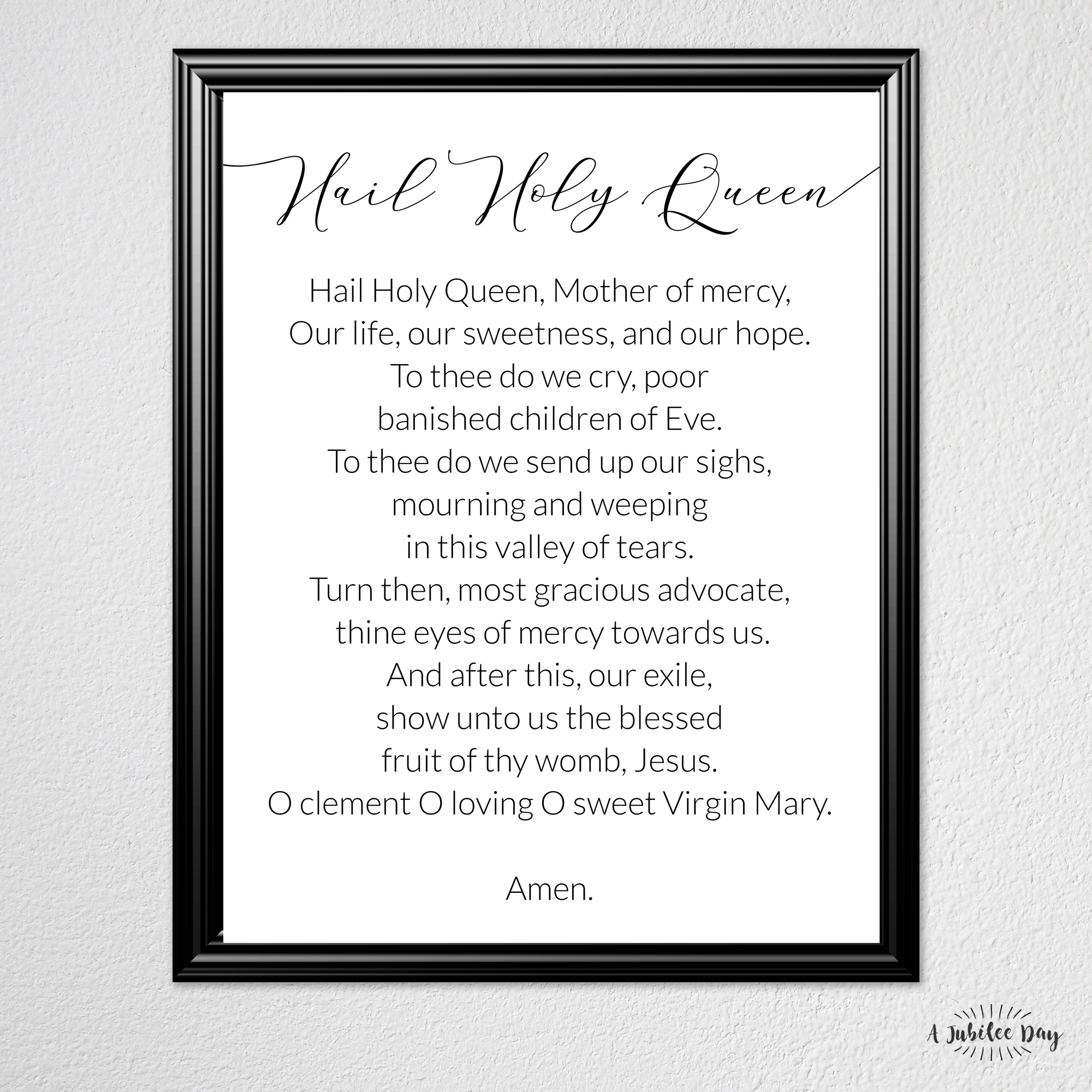 Hail Holy Queen Prayer Print Printable Catholic Prayer Catholic Art Blessed Mother Wall Art