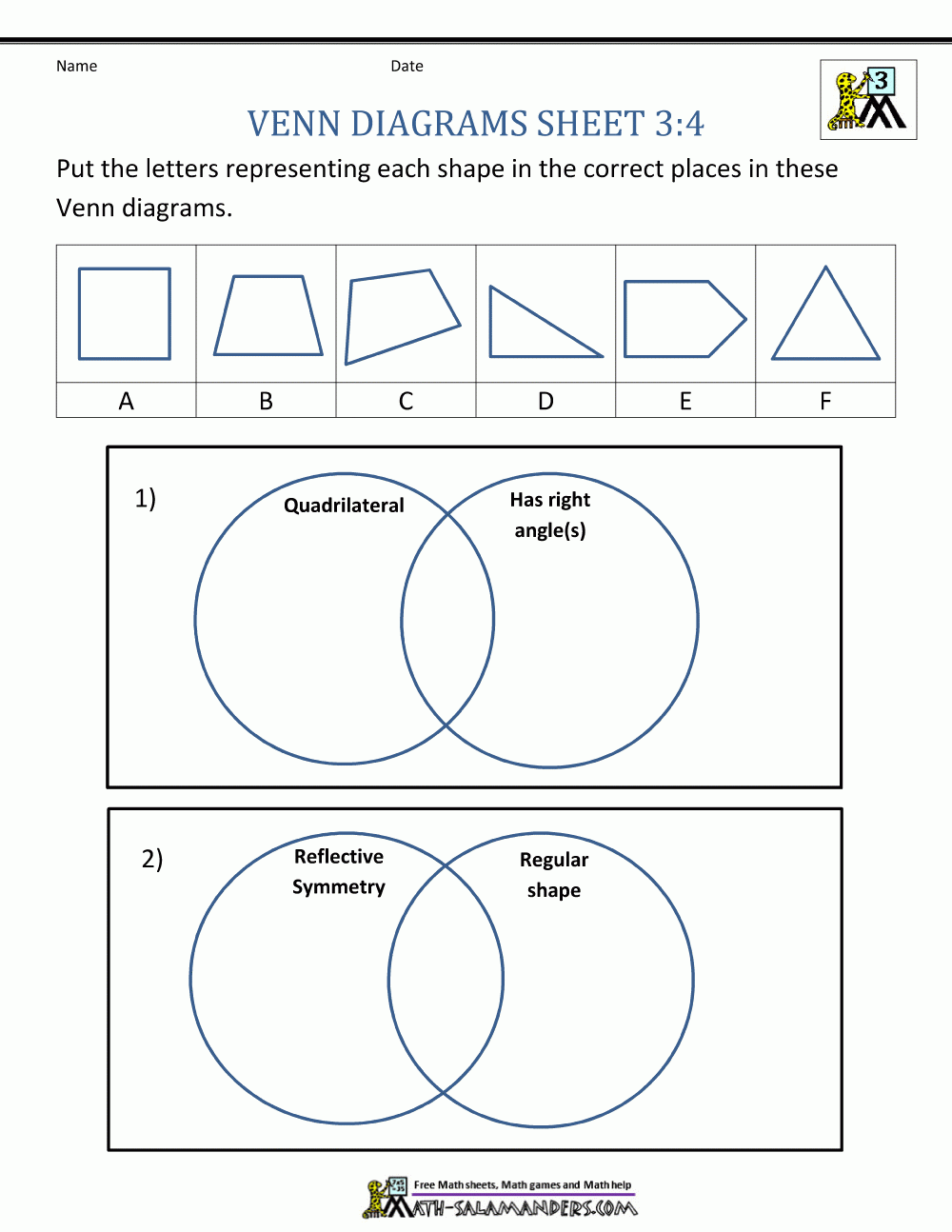 Venn Diagram Worksheets 3rd Grade