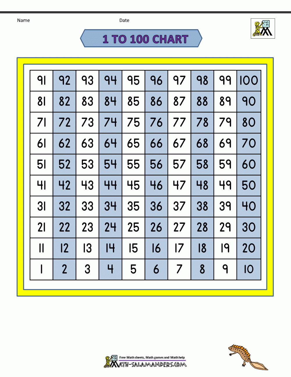 Free Printable Hundreds Charts Numbers 1 To 100 DIY Projects Worksheets Library
