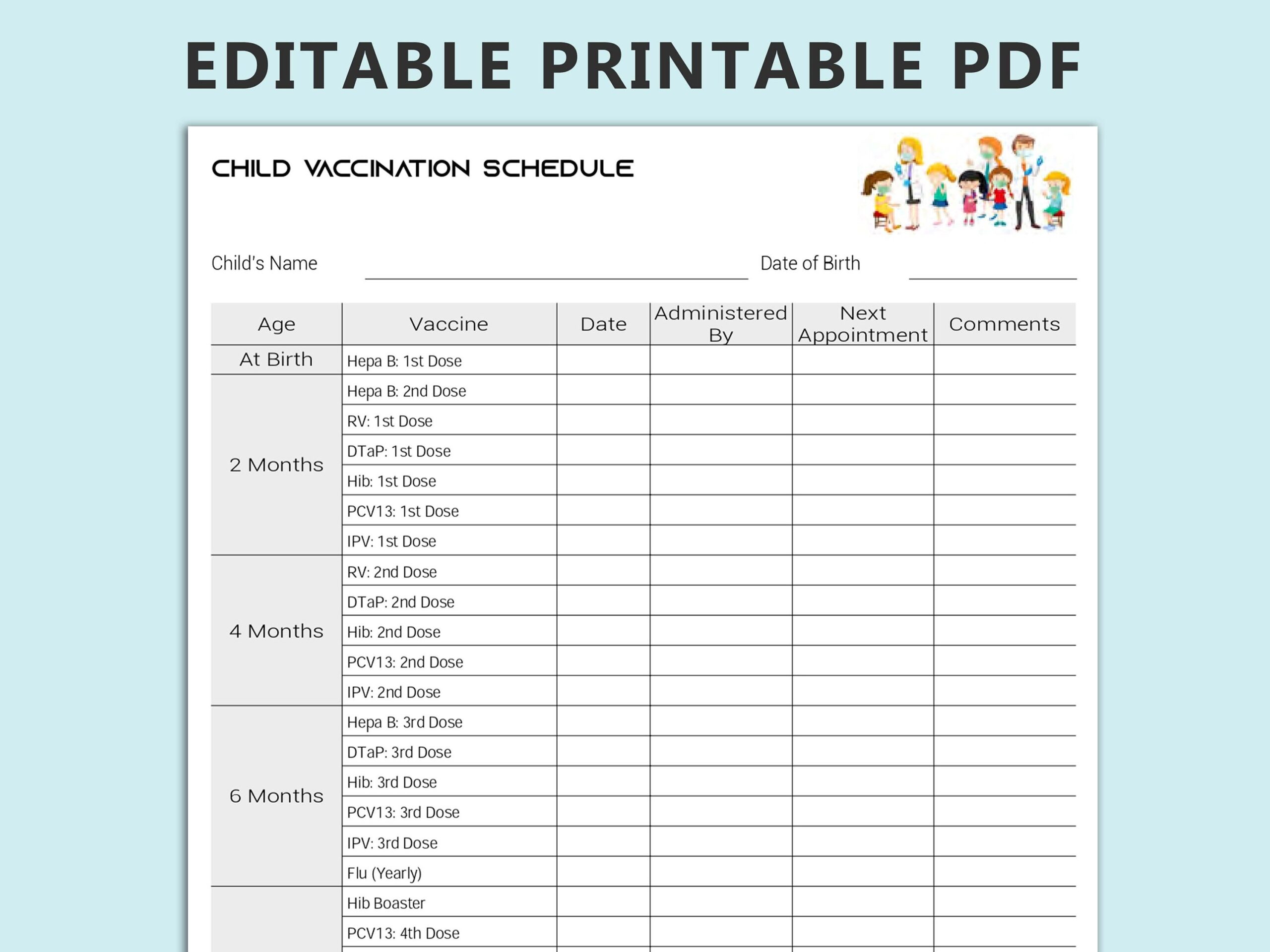 Child Vaccination Schedule Vaccination Timetable Immunization Schedule Pediatric Vaccine Chart Child Immunization Record Vaccination Pdf Etsy