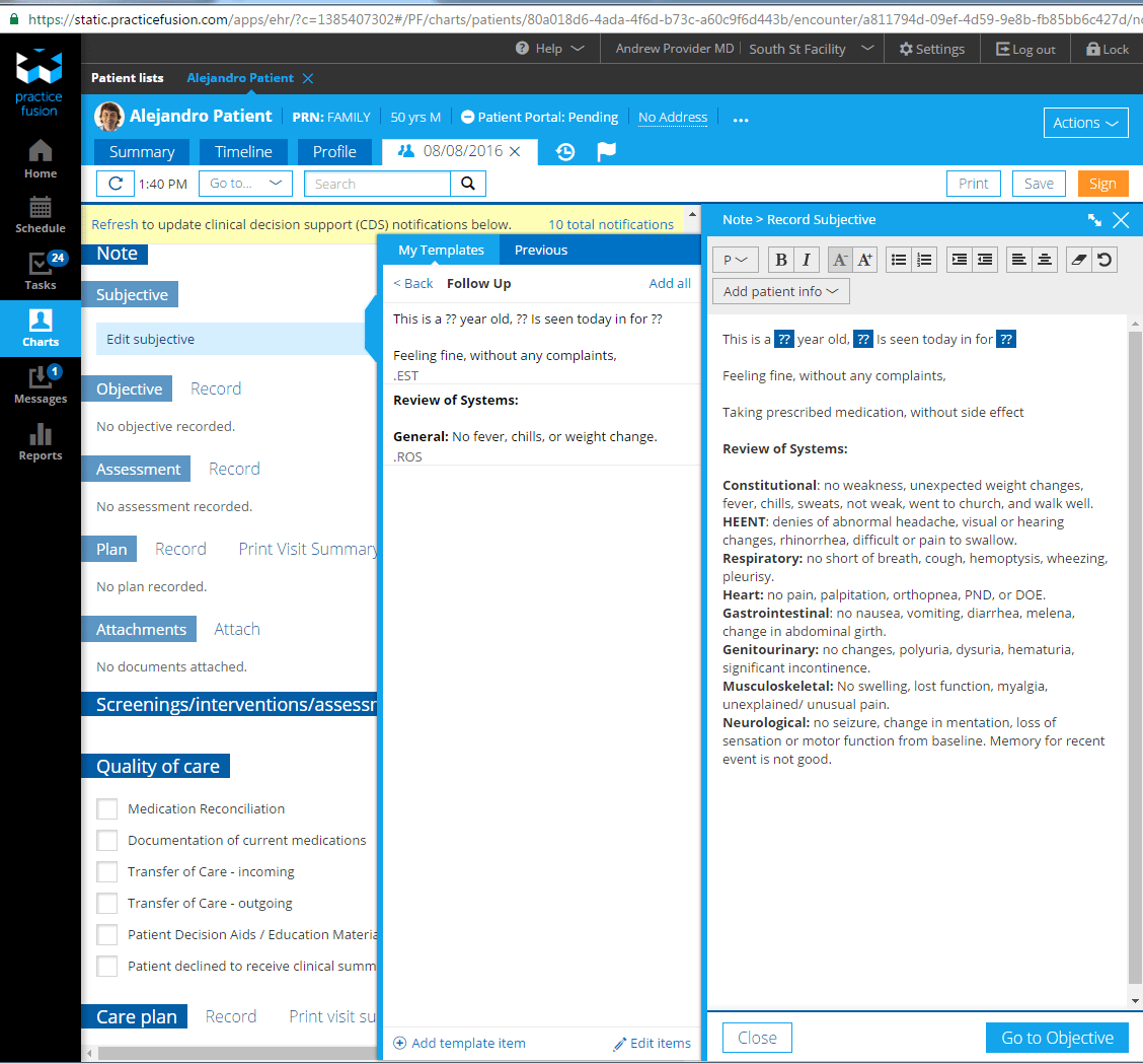 Medical Chart And SOAP Notes Templates Practice Fusion