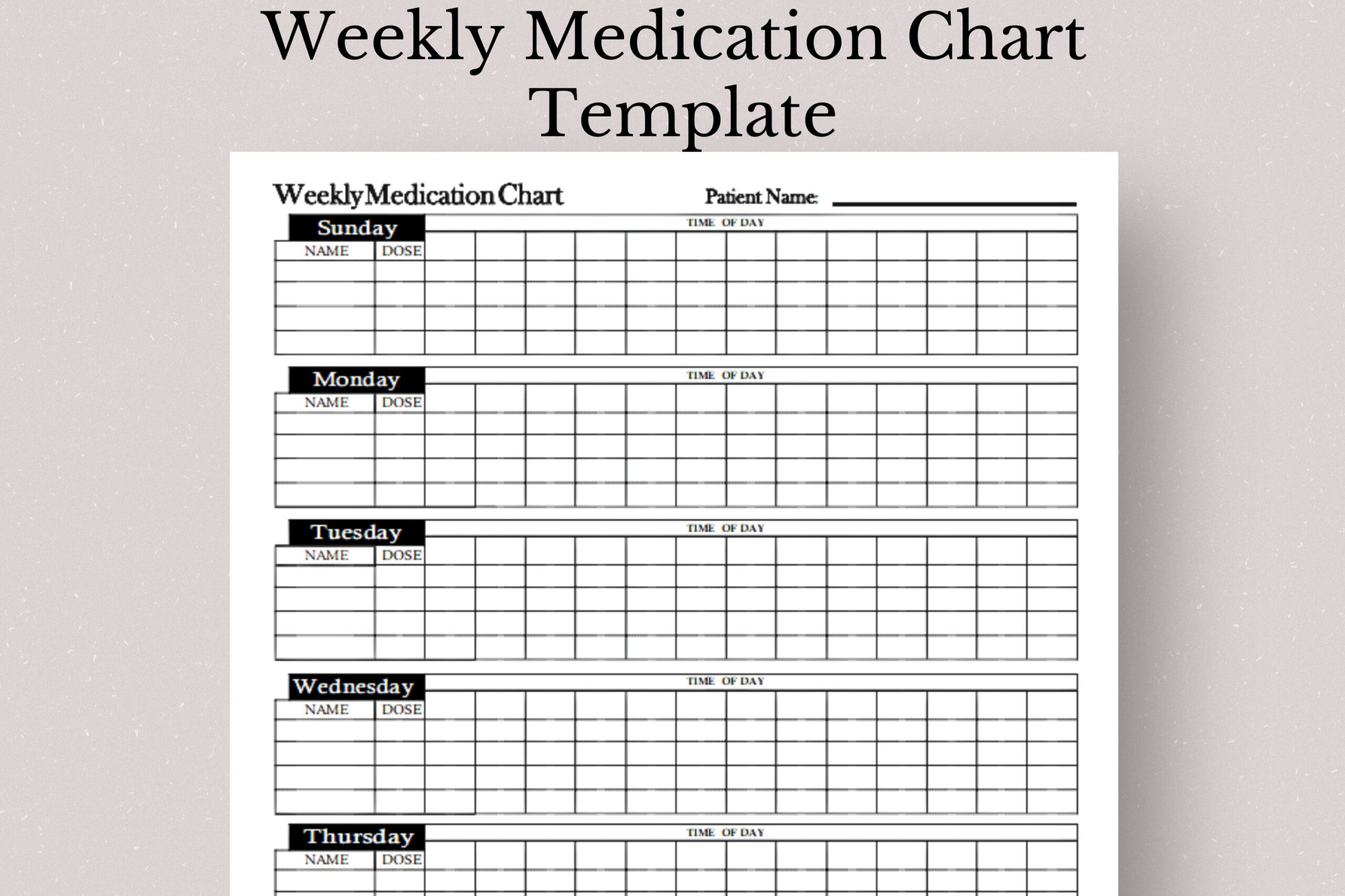 Weekly Medication Chart Template Weekly Medication Log Medication Log Template Medication Chart Weekly Medication Chart Etsy UK