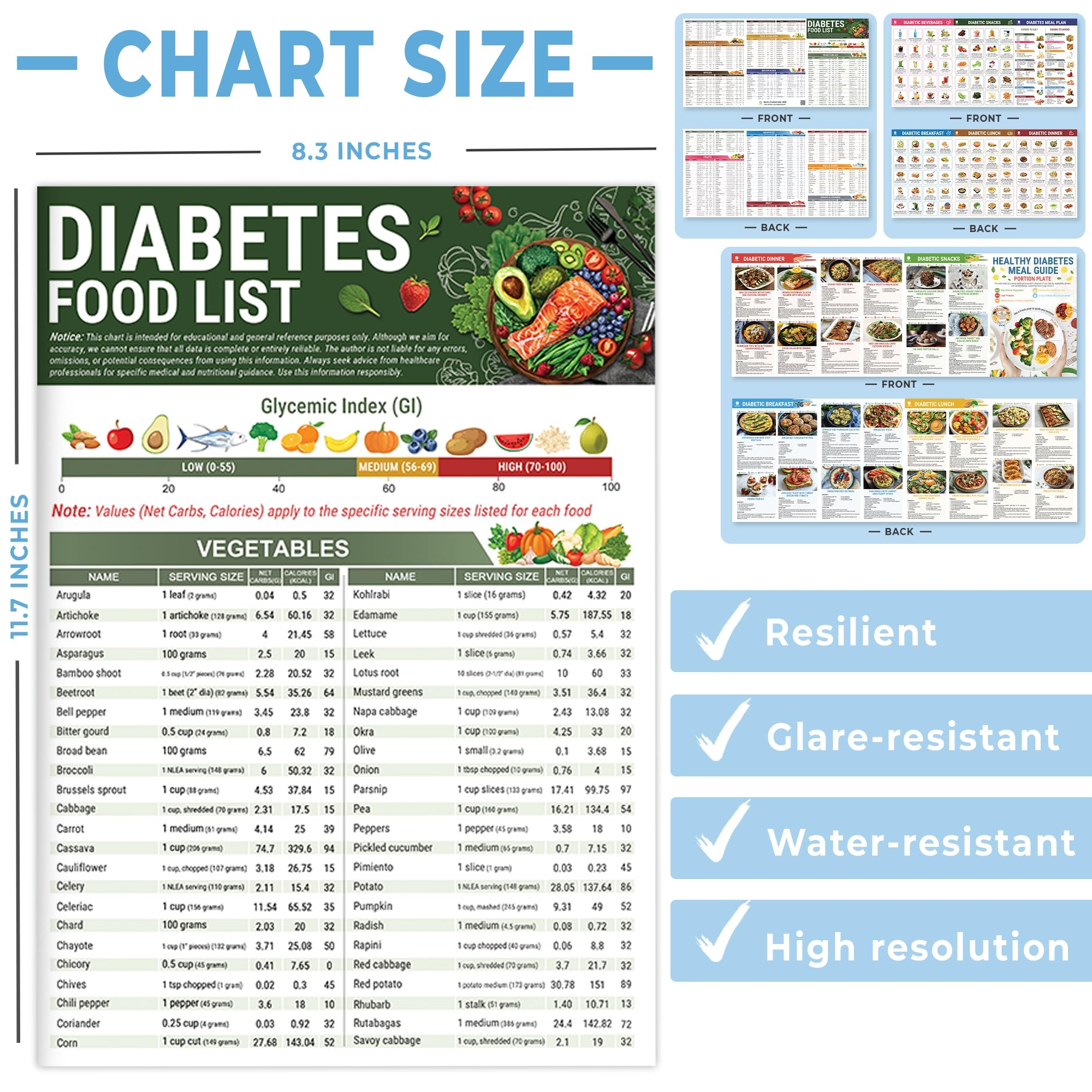 Amazon 3 Pcs Diabetes Food List Printable Diabetic Food Chart Brochure Diabetes Information Chart Vitamin Low Carb Meal Planner For