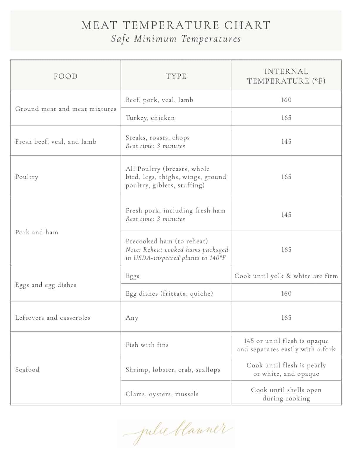 PDF Printable Meat Temperature Chart