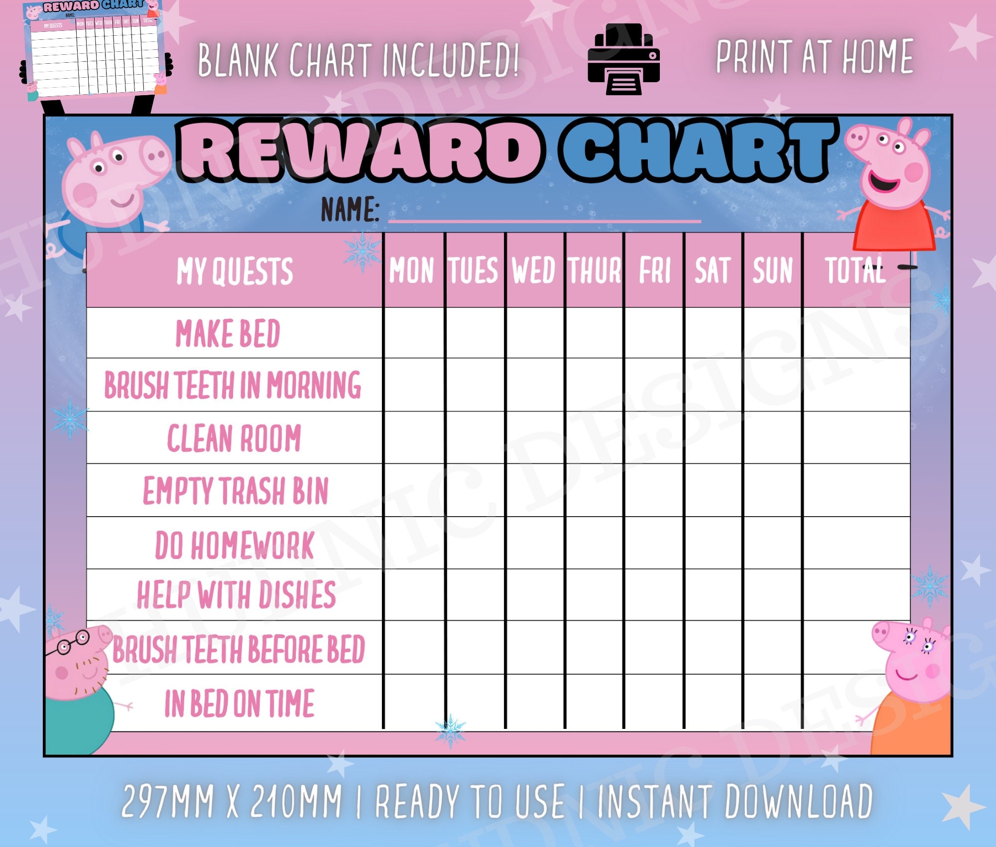 Peppa Pig Reward Chart Kids Chore Chart digital Download Etsy