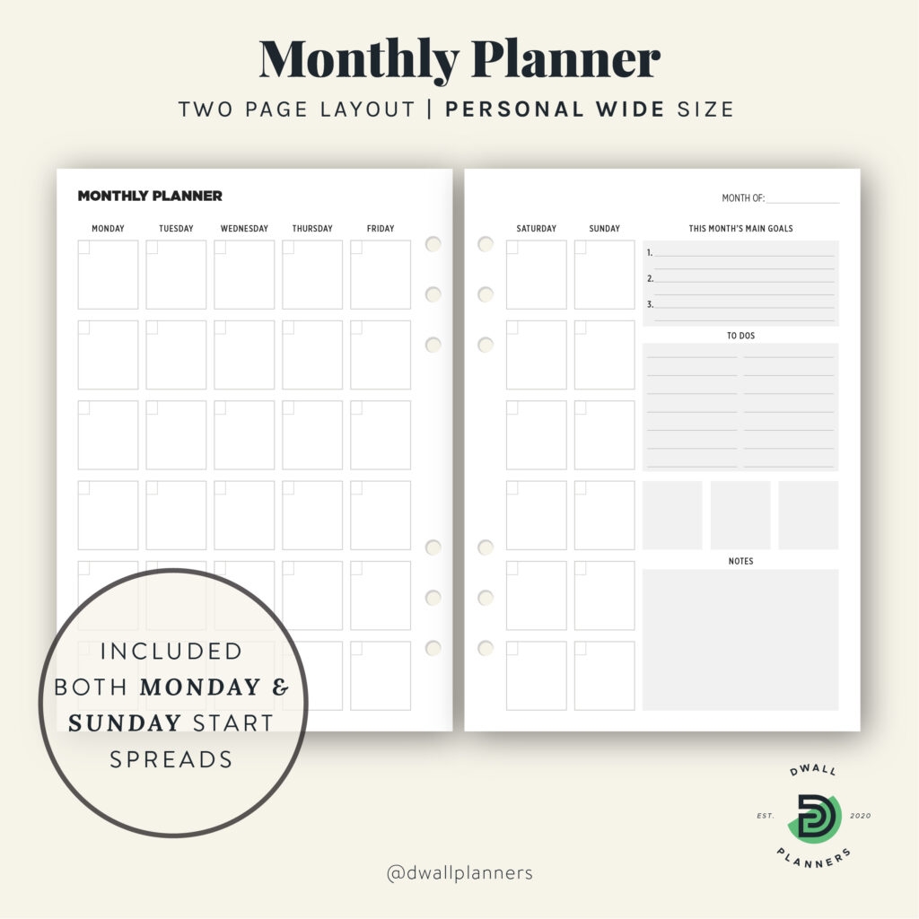 Monthly Planner Printable Insert Personal Wide