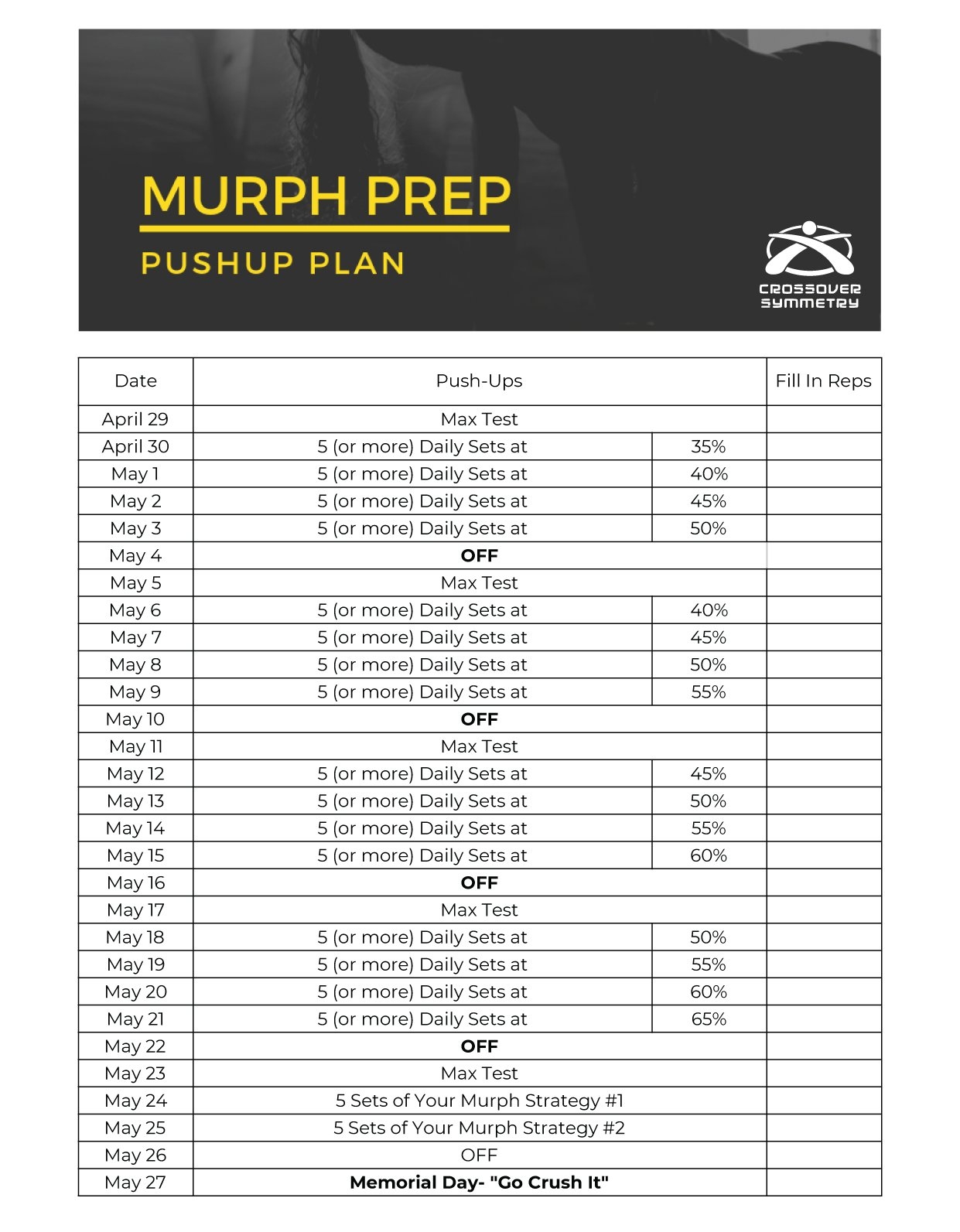 Simply download and print out the chart, then hang it somewhere you’ll see it every day. Each time you complete a set of pushups, mark it on the chart. Watching the numbers go up can be a great source of motivation to keep pushing yourself.