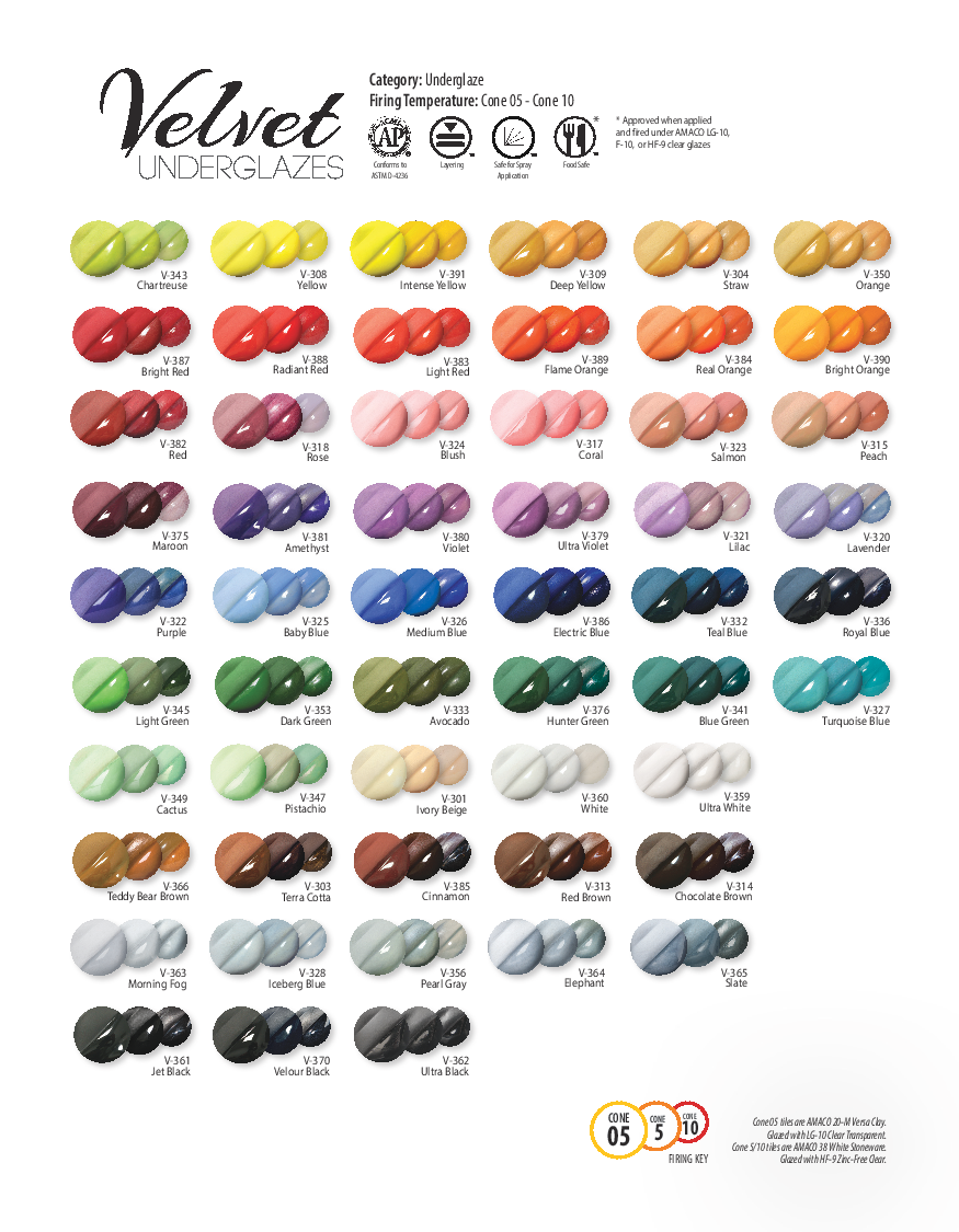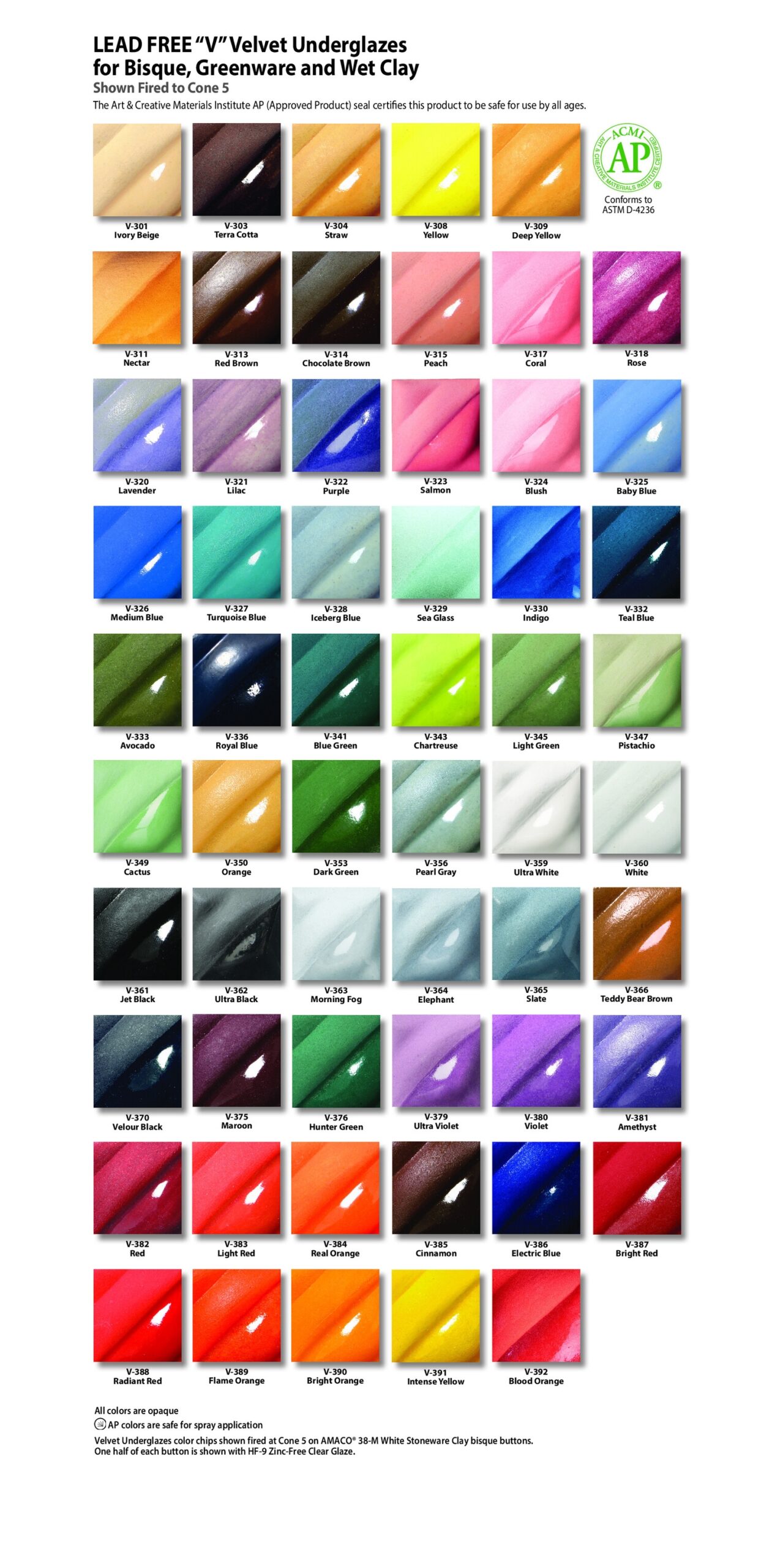 AMACO GLAZES VELVET UNDERGLAZE Artist Corner