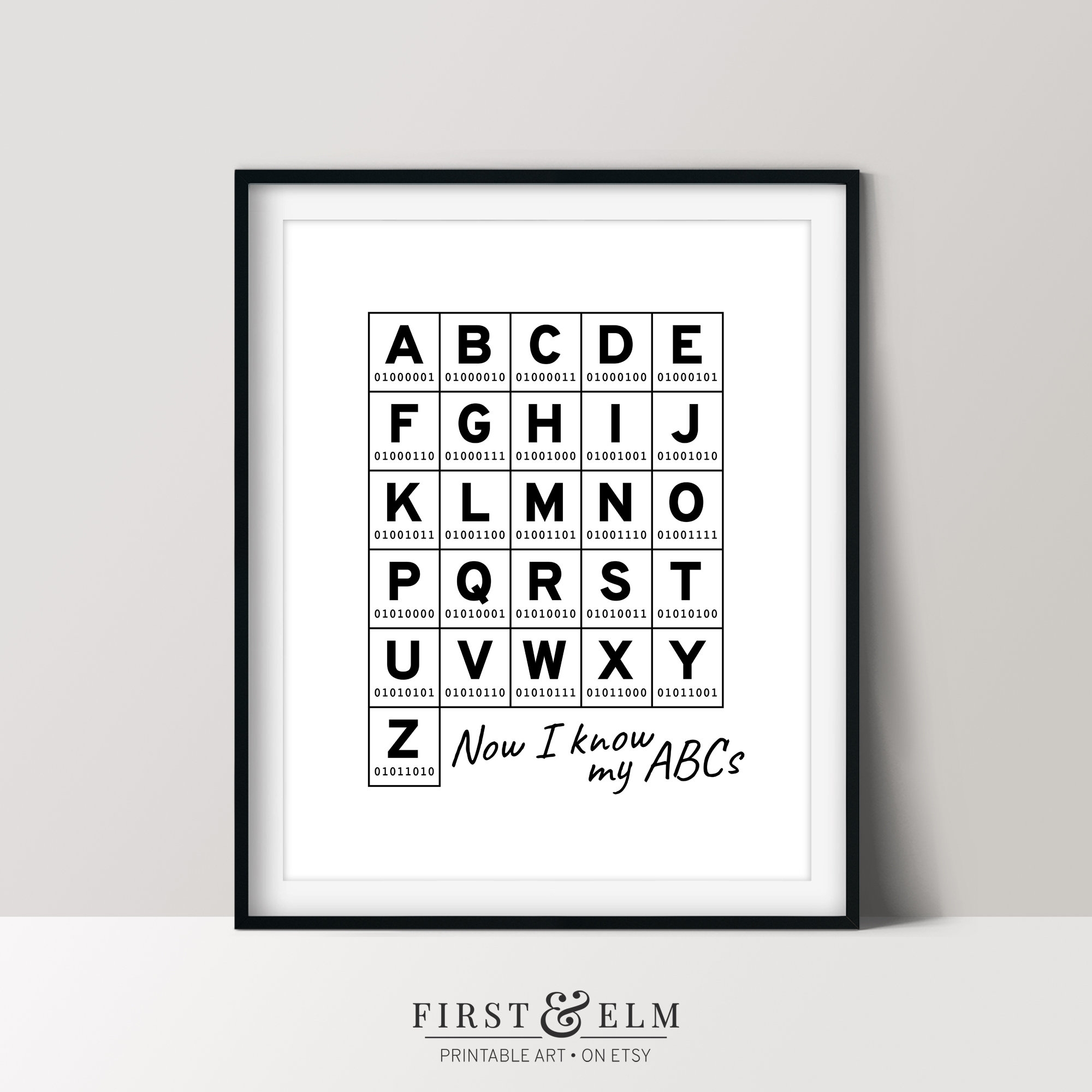 Binary Code Alphabet Unique ABC Poster Computer Lab D cor Printable Wall Art Etsy
