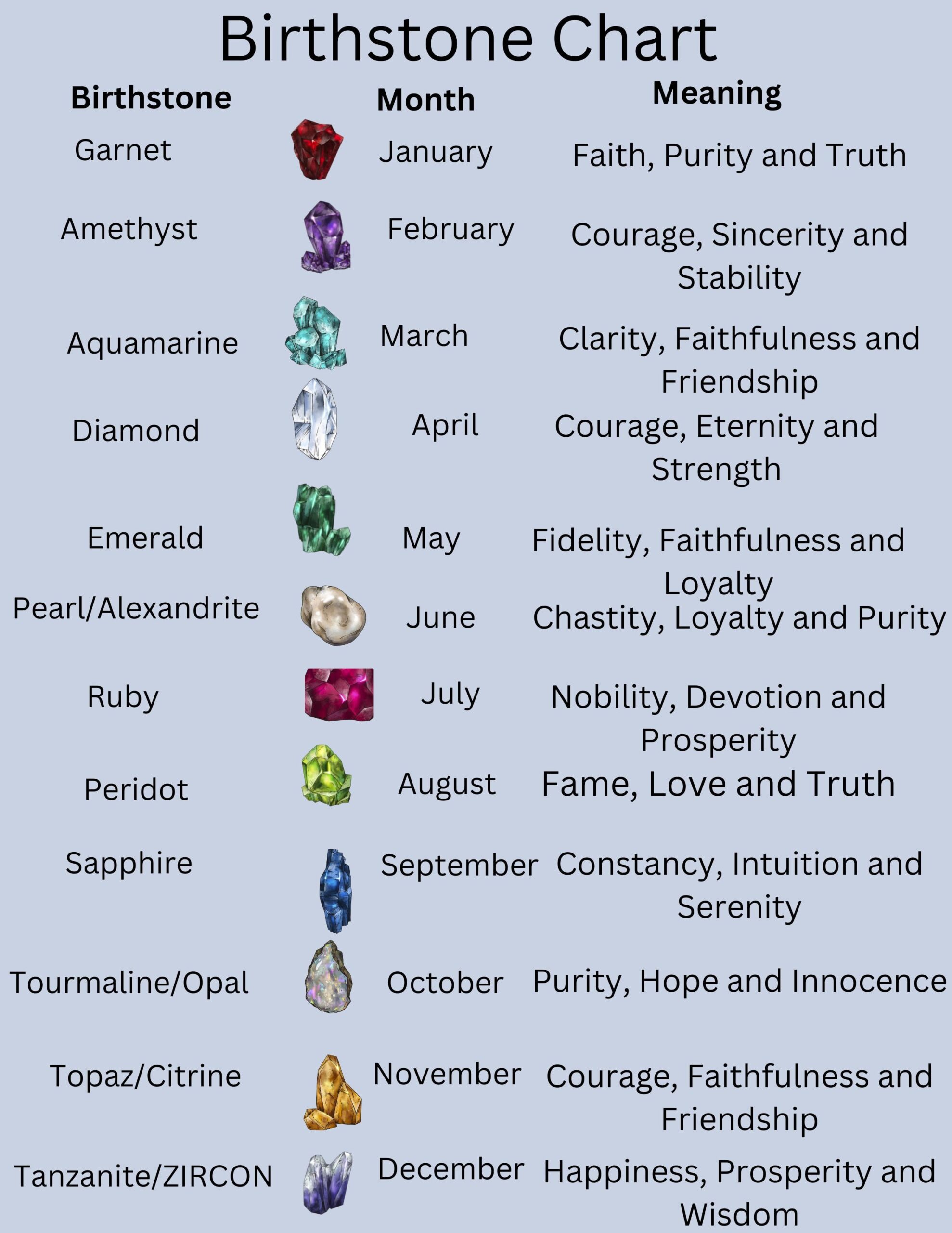 Printable birthstone charts are handy tools that display all 12 birthstones, along with their corresponding months and meanings. Whether you’re shopping for a birthday gift or simply want to learn more about gemstones, a birthstone chart can provide you with valuable information in a visually appealing format.
