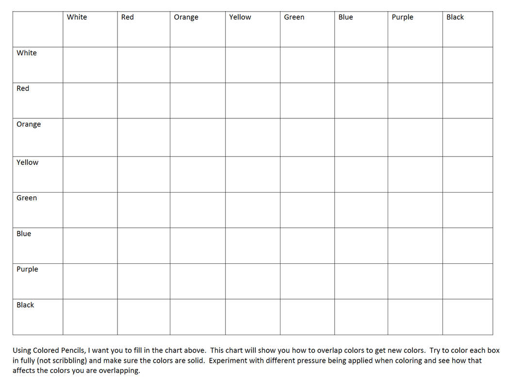 BLANK COLOURED PENCIL COLOUR CHARTS VALUE SCALES
