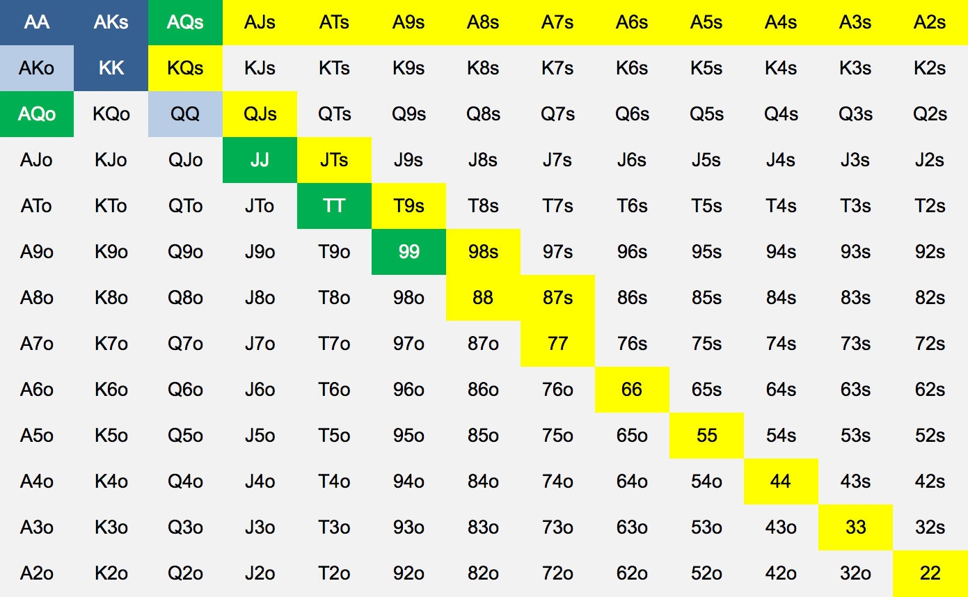 Advanced Poker Training Article NL Hold em Poker Starting Hand Charts