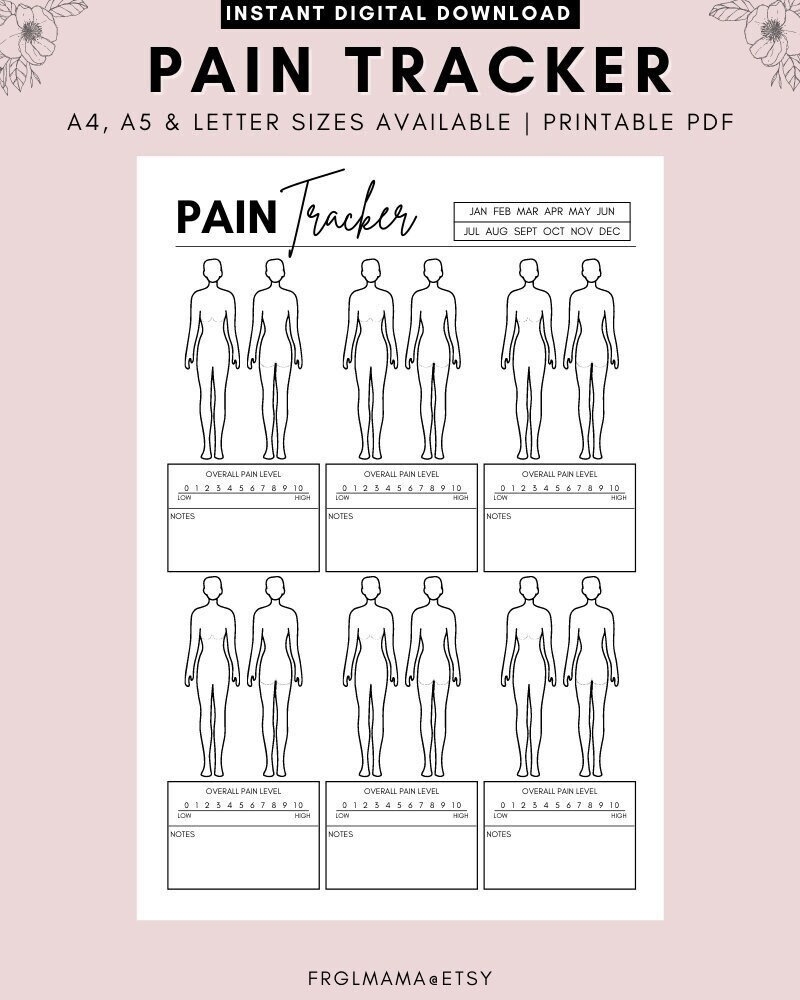 Pain Symptoms Tracker Pack With Preset Or Customisable Trackers Pain Chart 2 Body Silhouettes Printable Fillable Instant Download Etsy