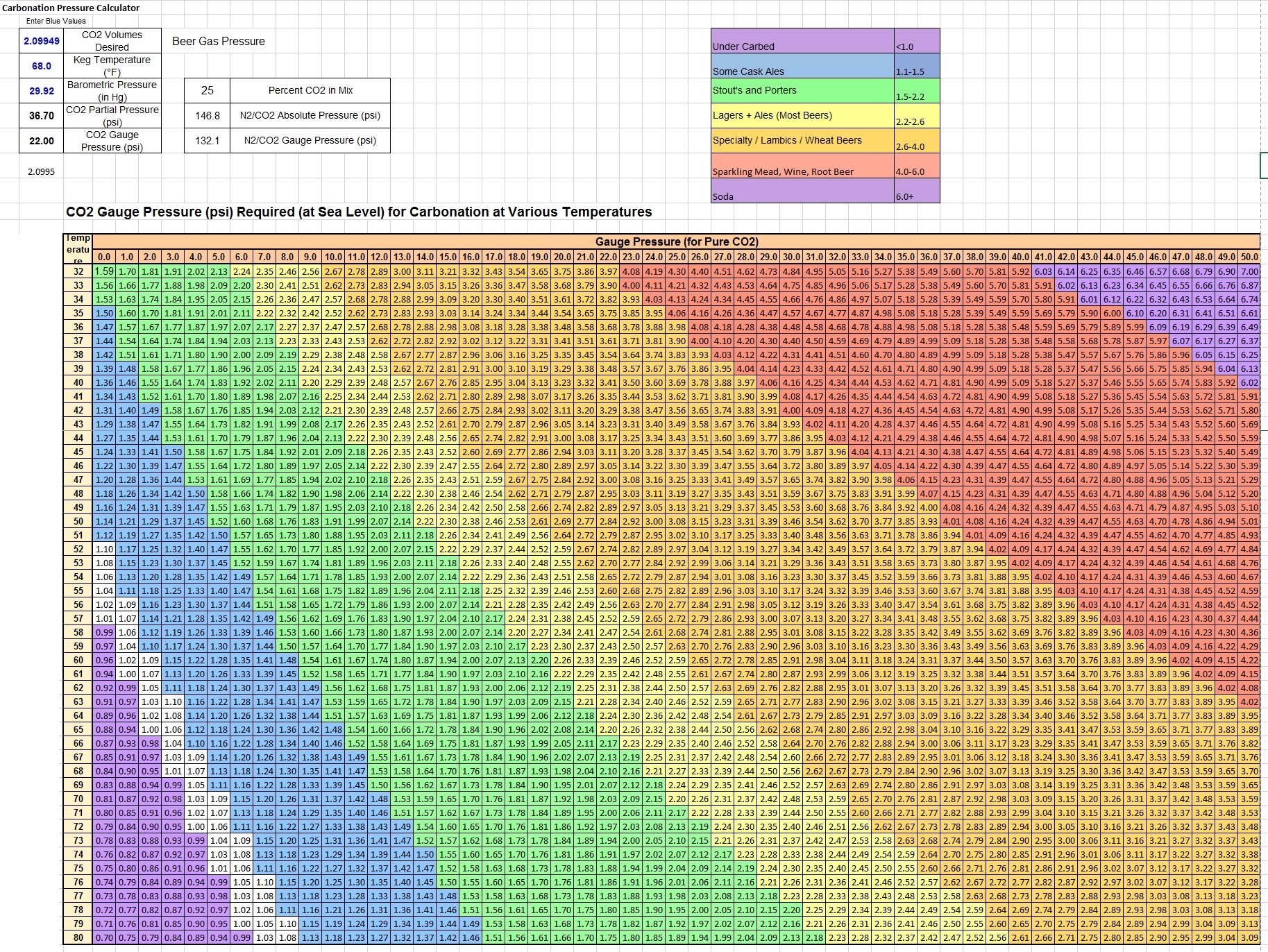 Printable Carbonation Volume Chart