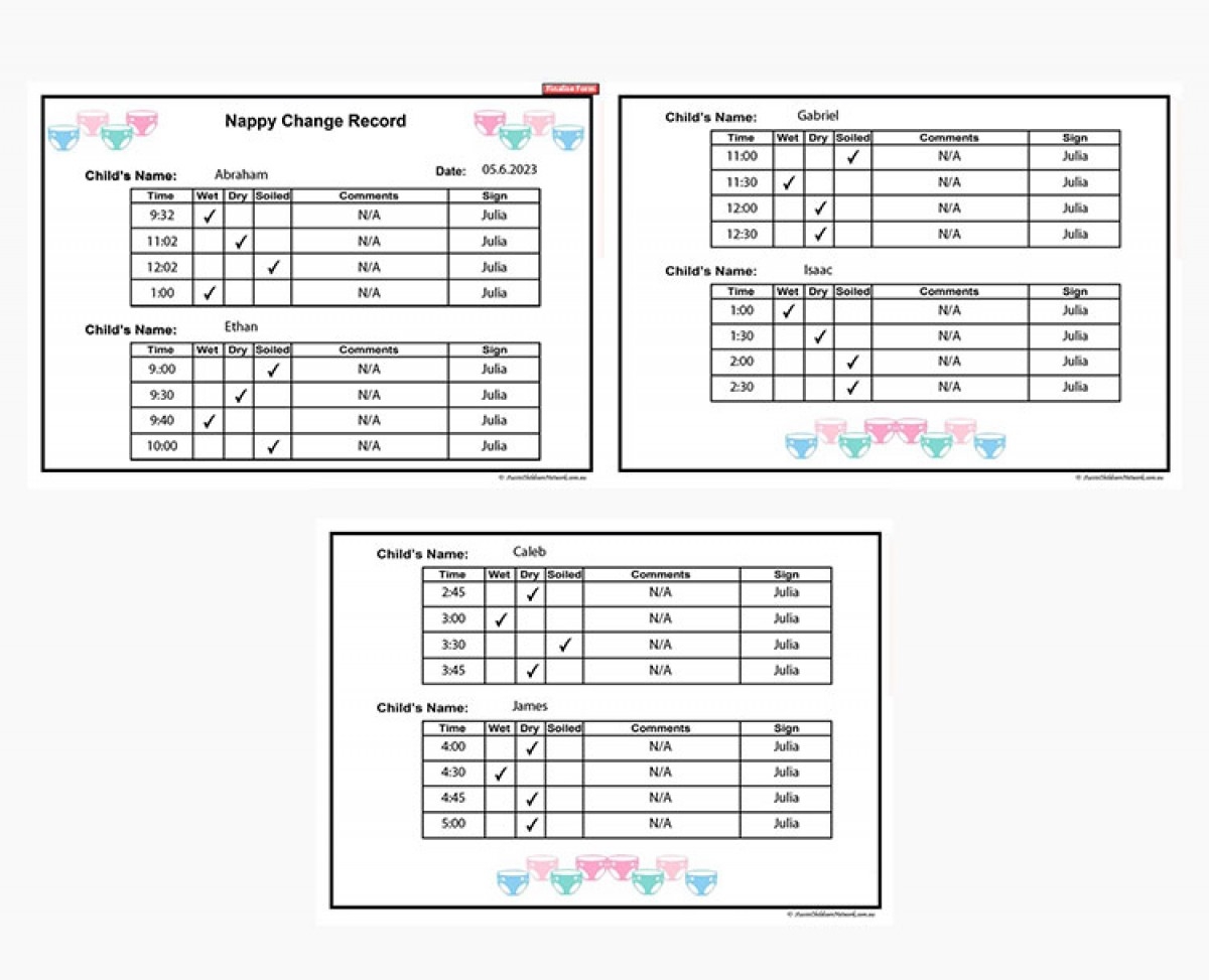 Nappy Change Record Aussie Childcare Network
