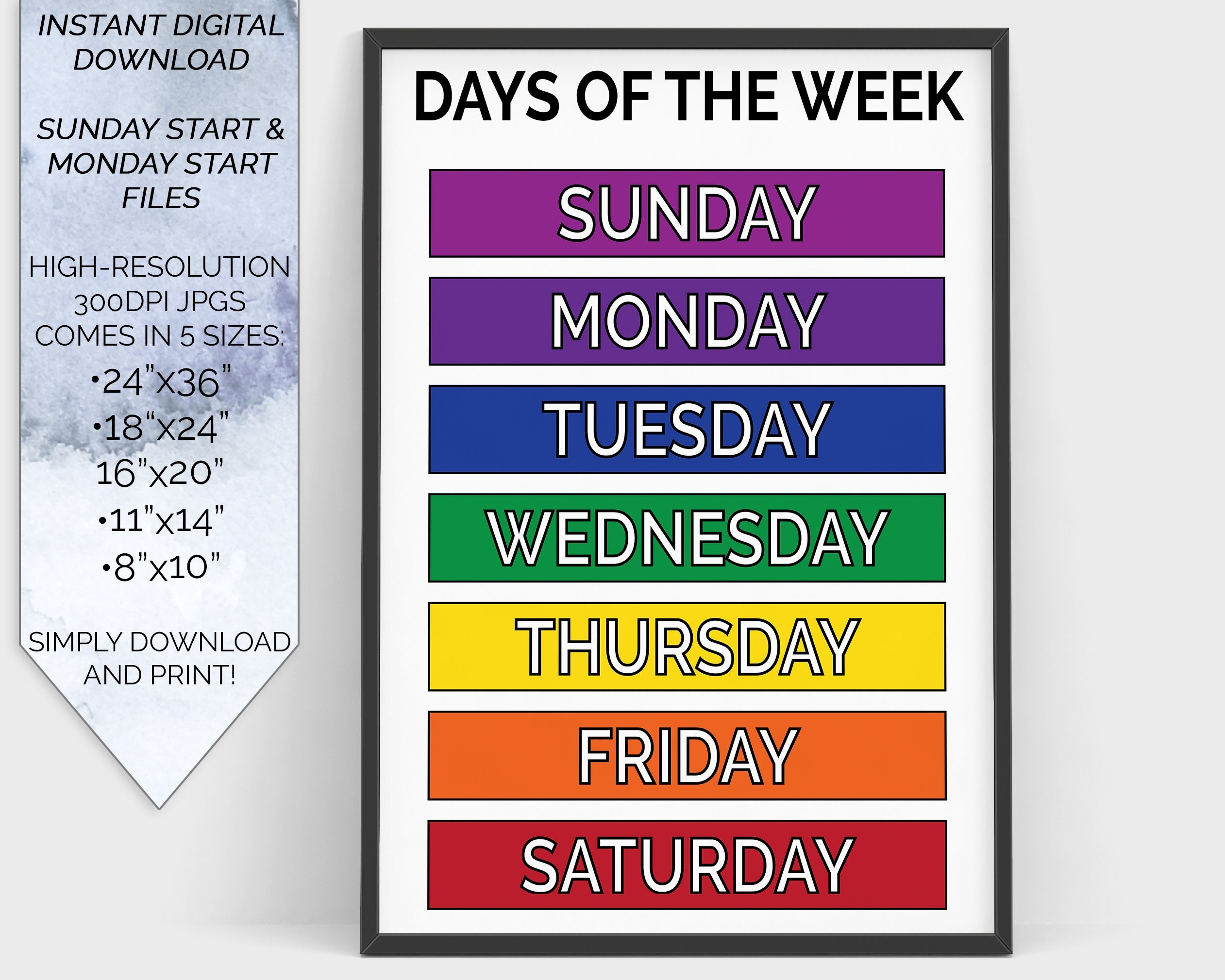 Days Of The Week Kids Education Learning Chart Poster Printable Homeschool Virtual Learning Classroom Wall Poster Print Elementary School