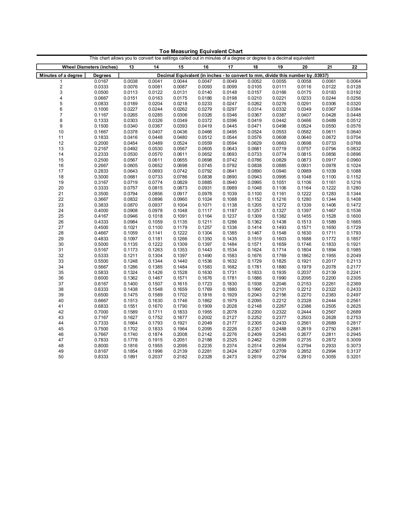 Toe Measuring Equivalent Chart Smart Racing Products Flip EBook Pages 1 4 AnyFlip