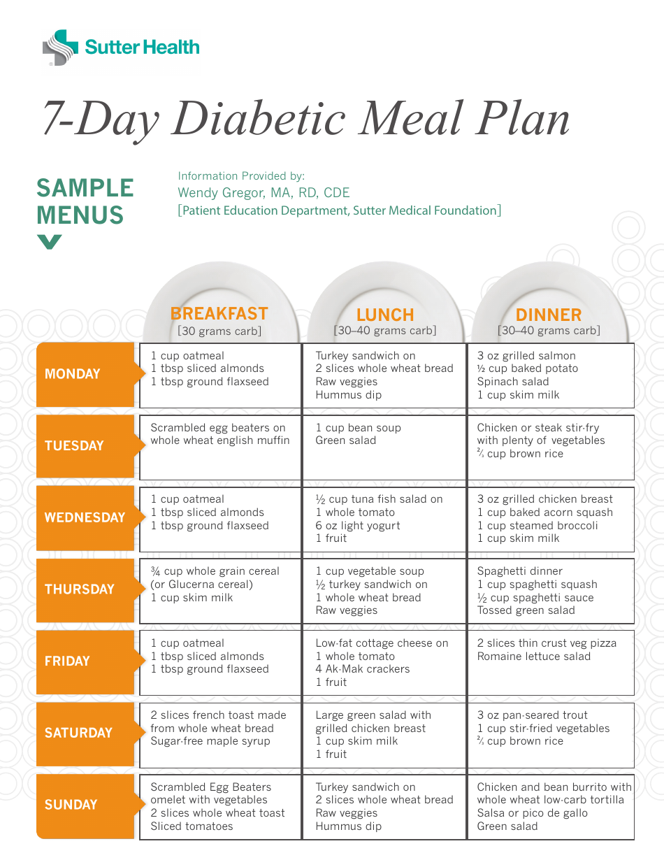 7 day Diabetic Meal Plan Download Printable PDF Templateroller