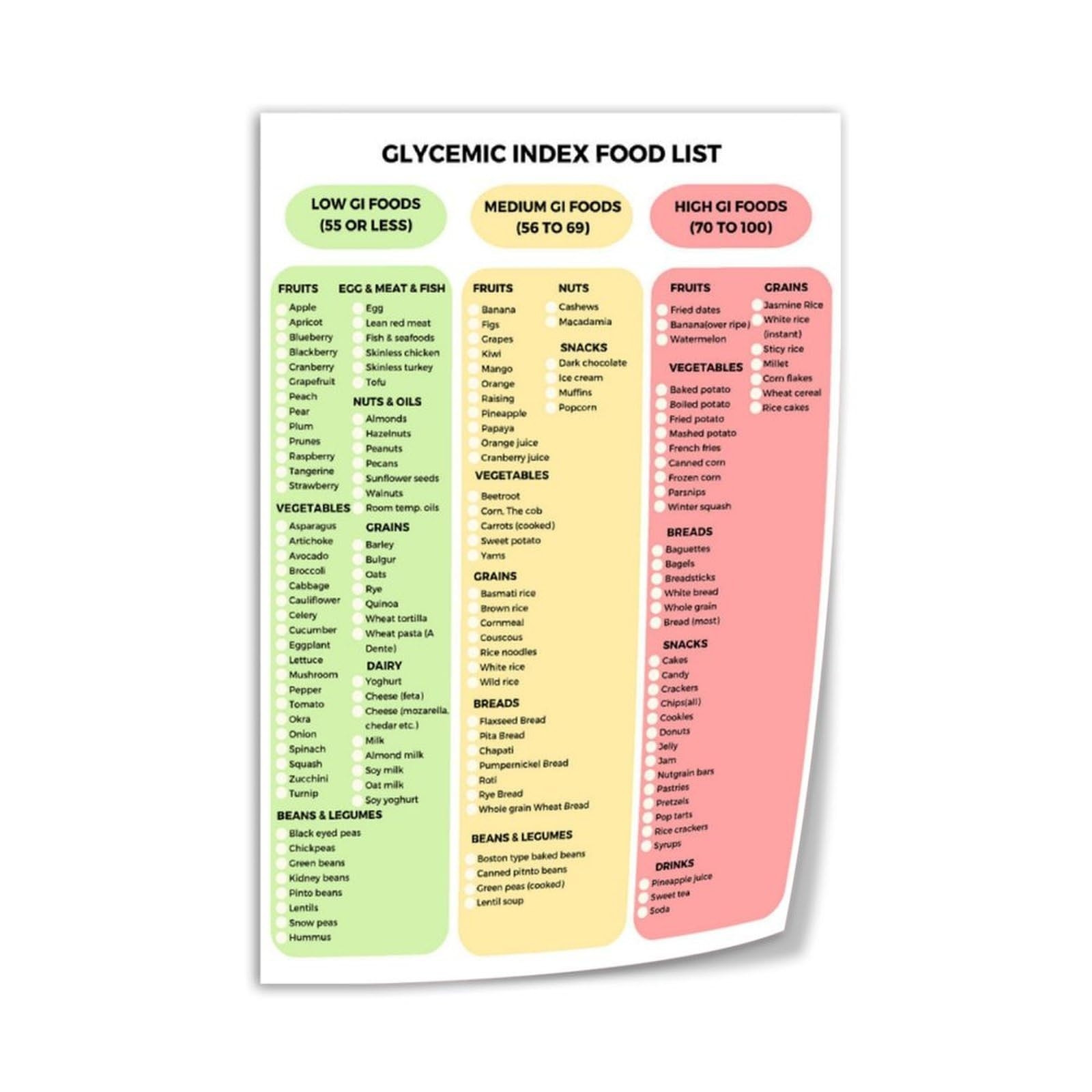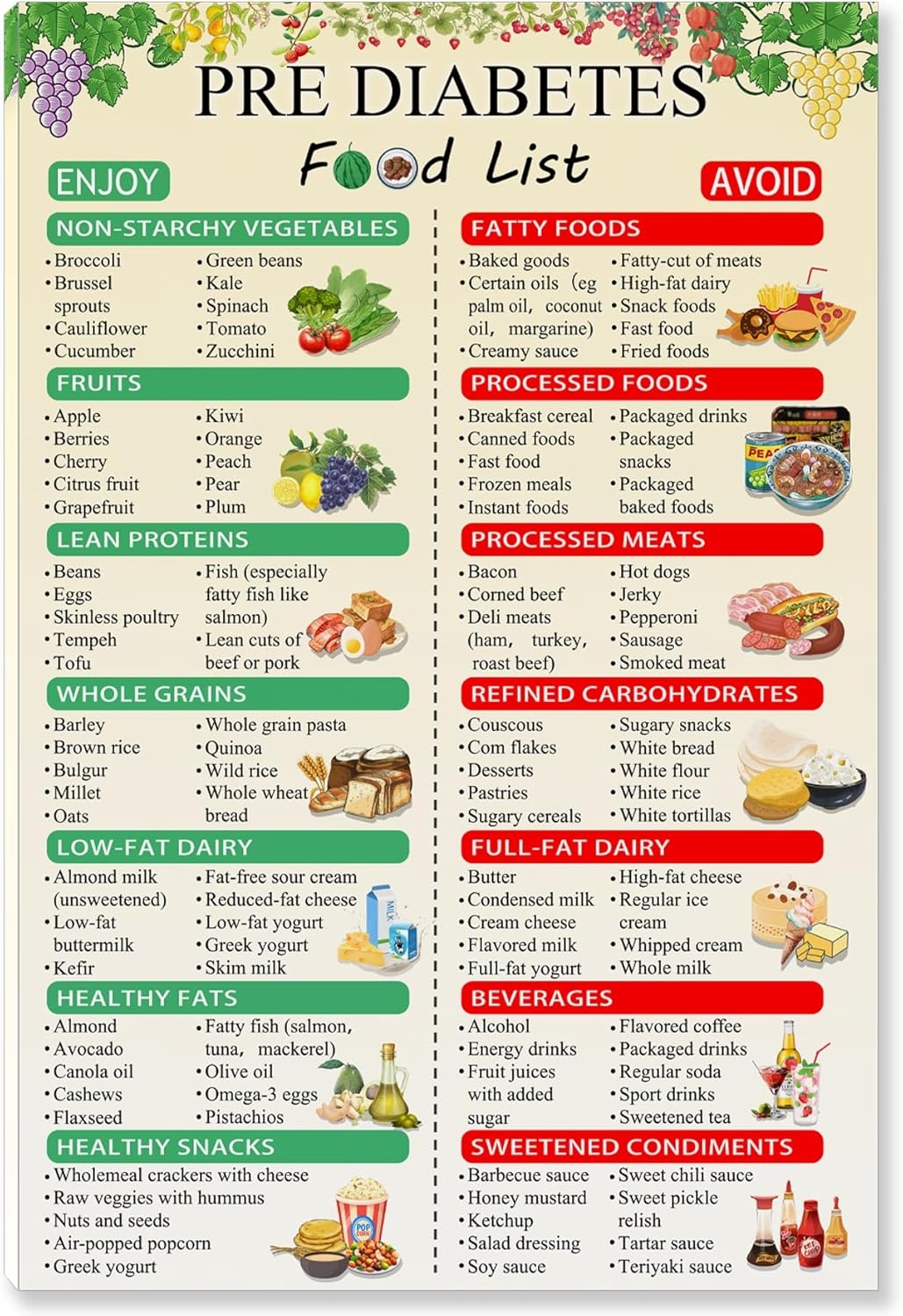 Amazon 2PCS Diabetes Food List Laminated Diabetes Meal Plan U0026 Grocery Chart With Serving Size Carbs Calories And Glycemic Index For