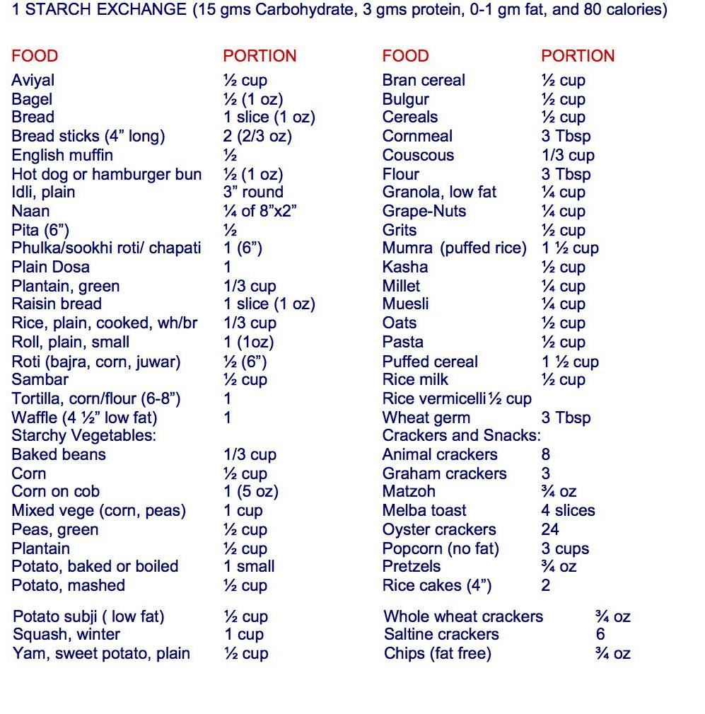Printable Diabetic Exchange Chart: A Helpful Resource