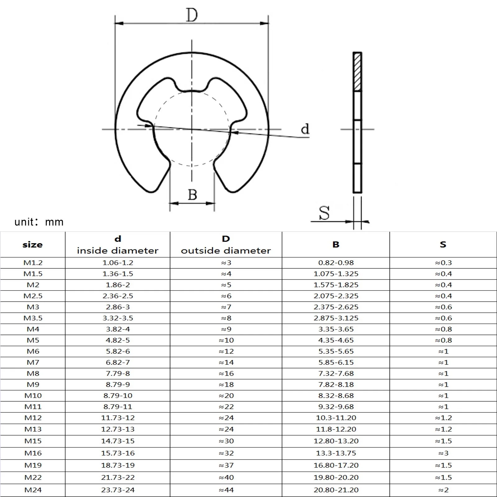 From small e-clips for delicate electronics to larger ones for heavy-duty machinery, our chart covers a wide range of sizes to meet your diverse needs. No more guessing or searching through countless drawers – just consult the chart and find the right size in seconds.