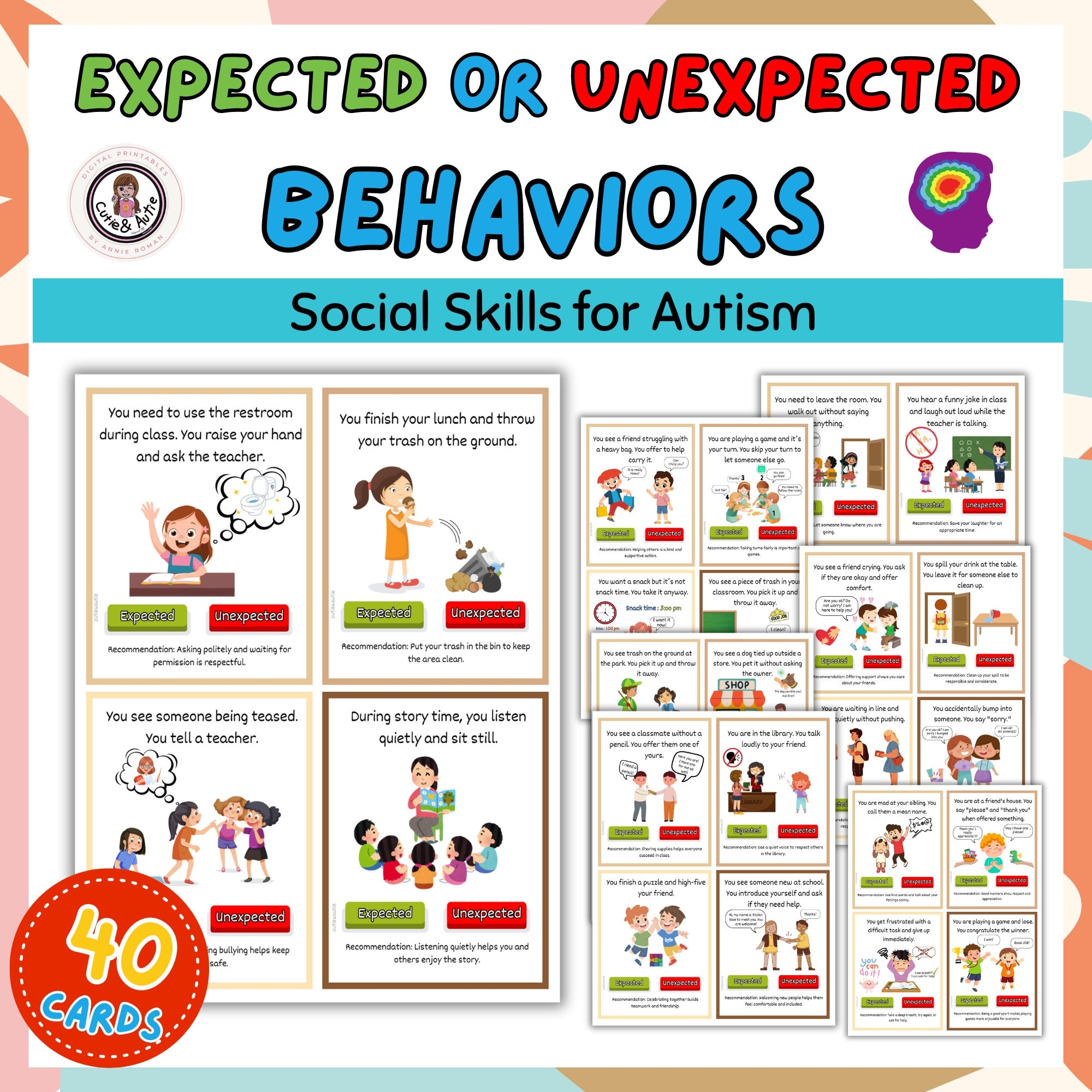 Expected Vs Unexpected Behavior Cards For Kids With Autism I 40 Cards Etsy