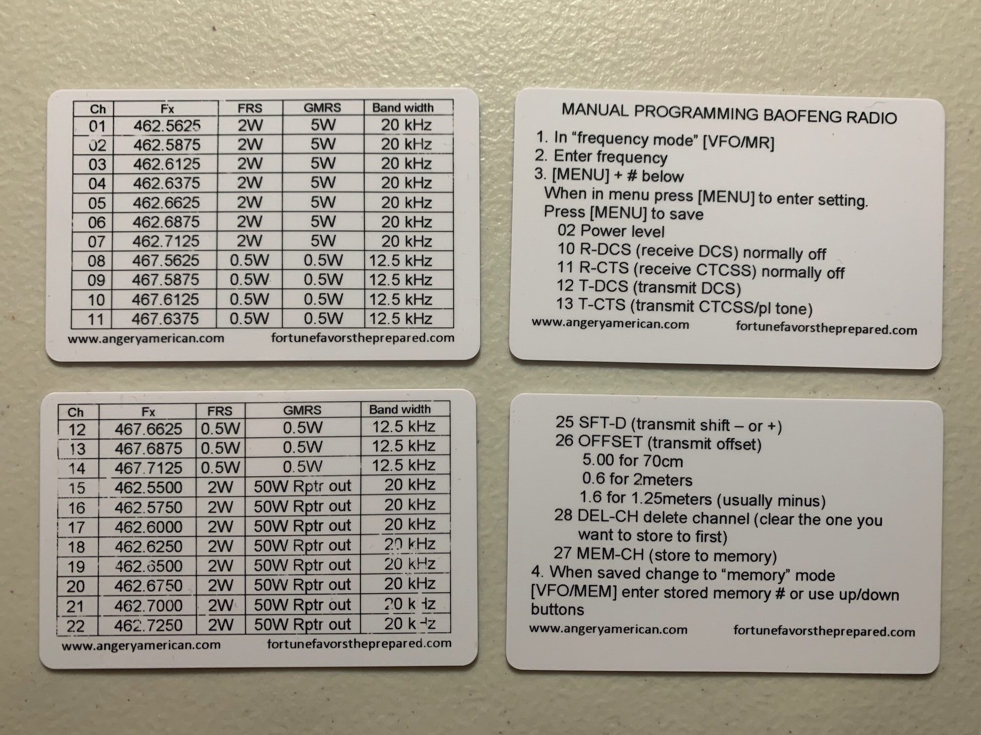 GMRS FRS Frequenciesu0026 Baofeng Programming Cards 2 Cards