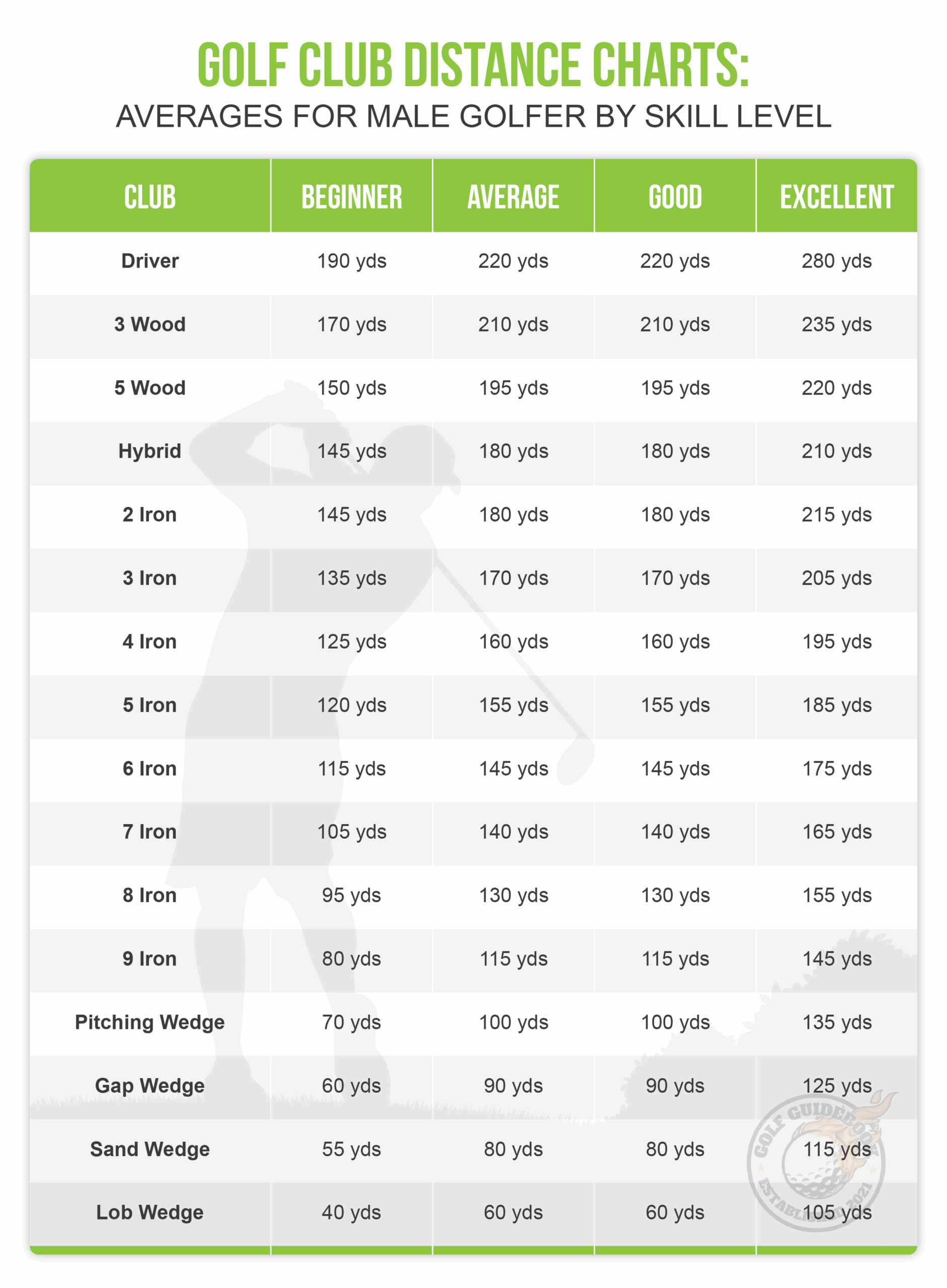7 Golf Club Distance Charts By Age Gender And Skill Level