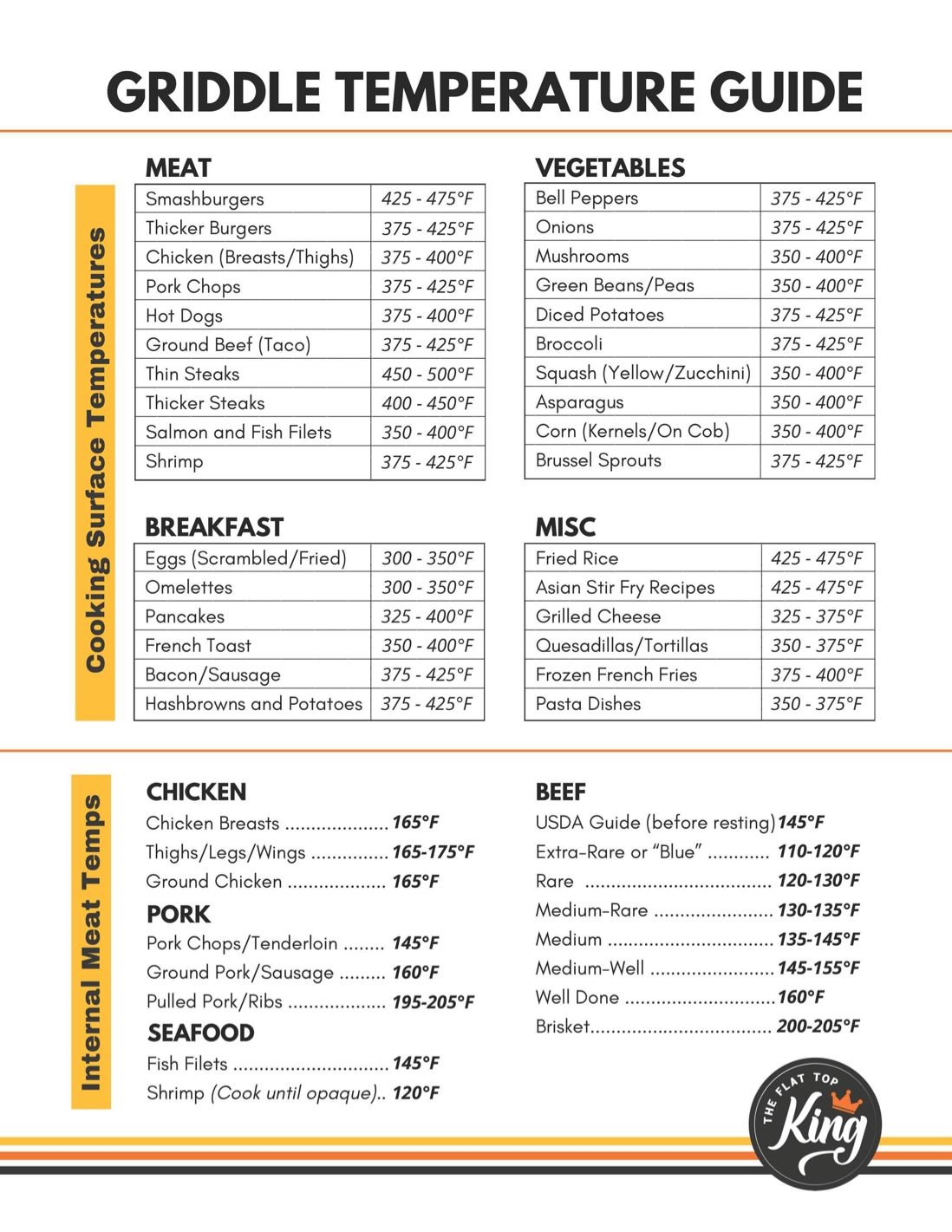 Griddle Cooking Temperature Chart Free To Print The Flat Top King