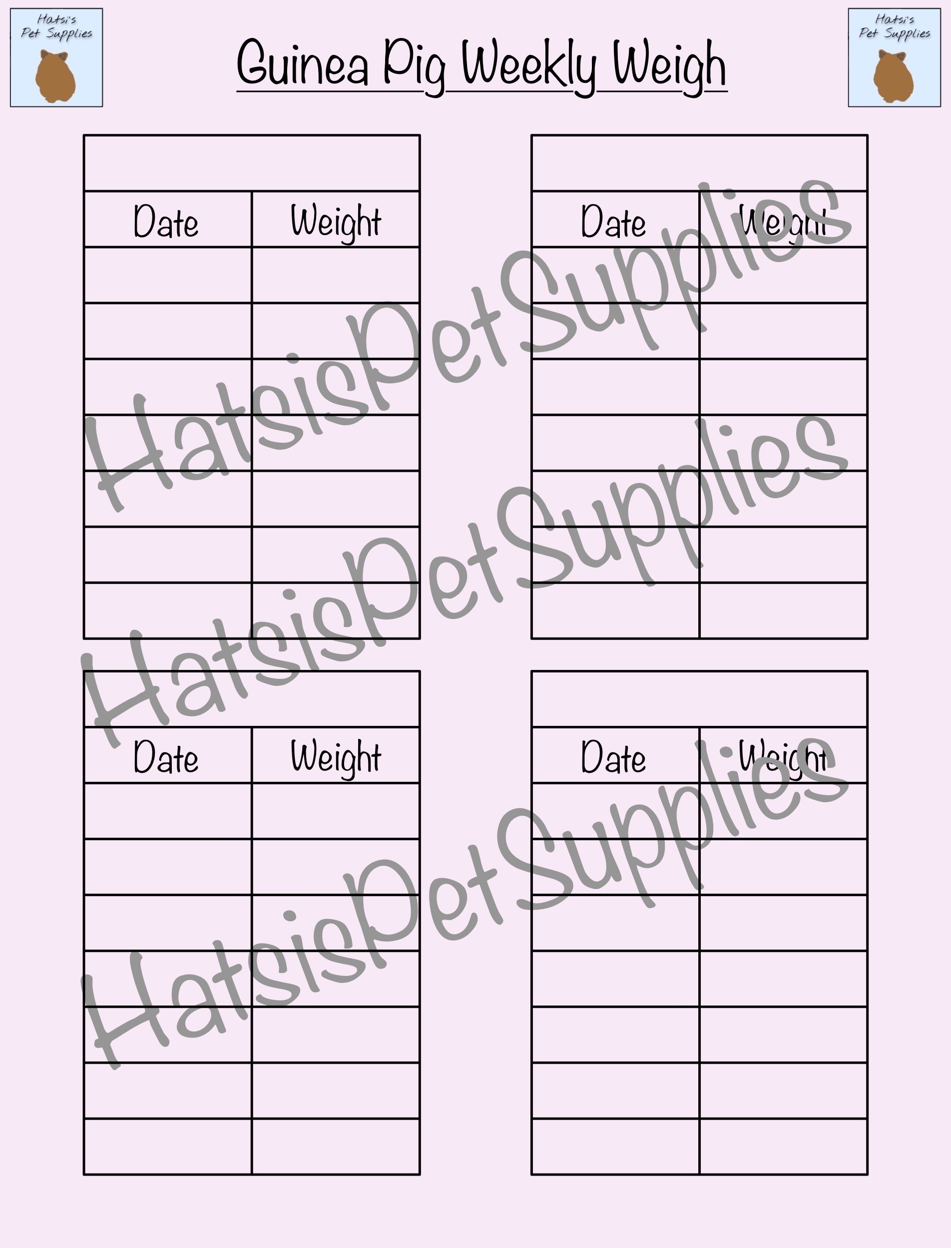 Guinea Pig Weight Tracker Health Log A4 PDF Download Rodent Growth Record Pet Change Chart Breeding List Colour Bundle Etsy