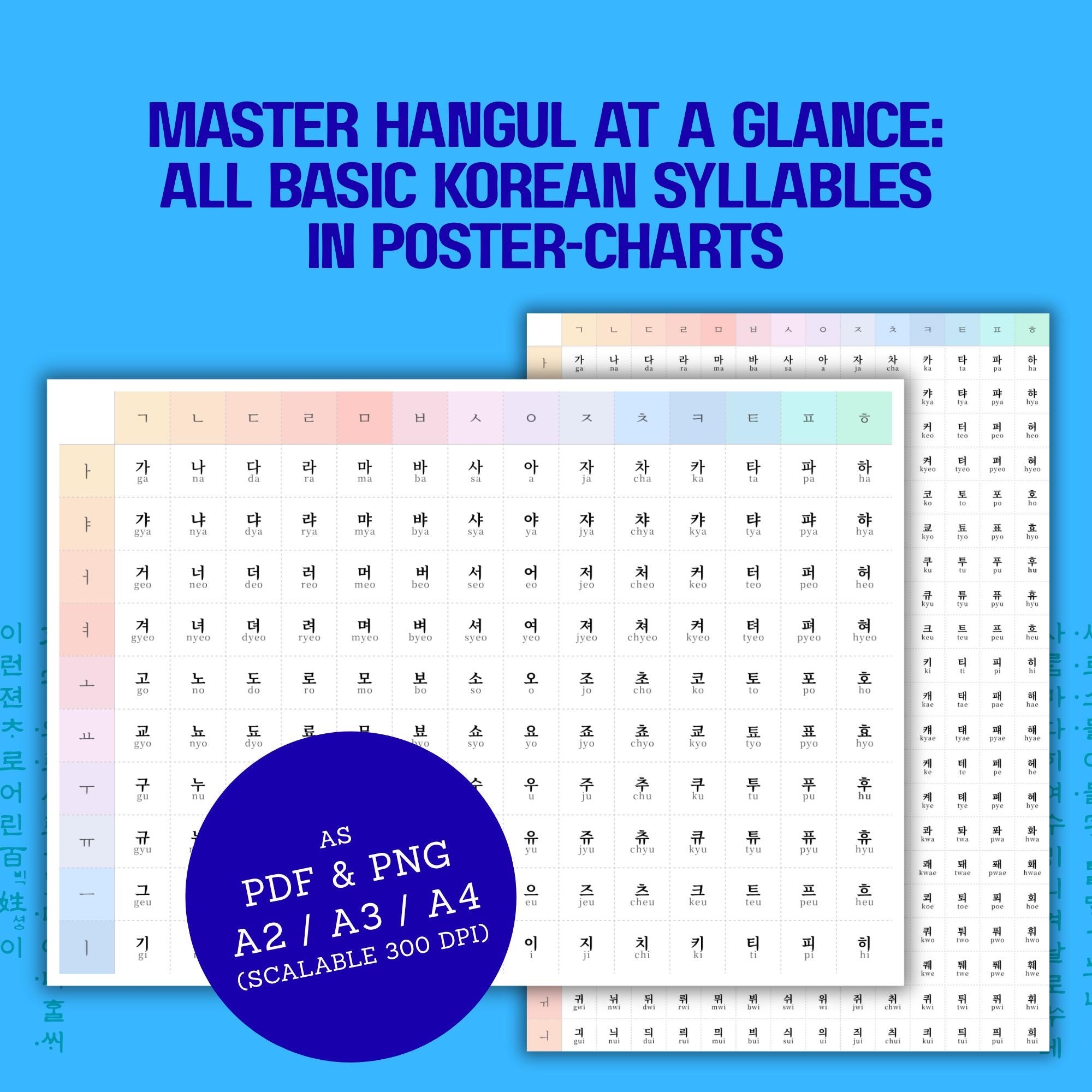 Hangul Alphabet Chart Korean Syllable Combinations Poster PDF PNG Etsy