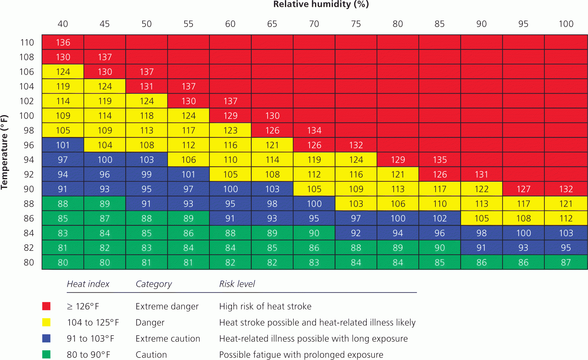 By referring to a heat index chart, you can adjust your activities and clothing choices accordingly. For example, if the heat index indicates high risk, you may want to avoid strenuous exercise or wear light, breathable fabrics to stay comfortable and avoid heat exhaustion.