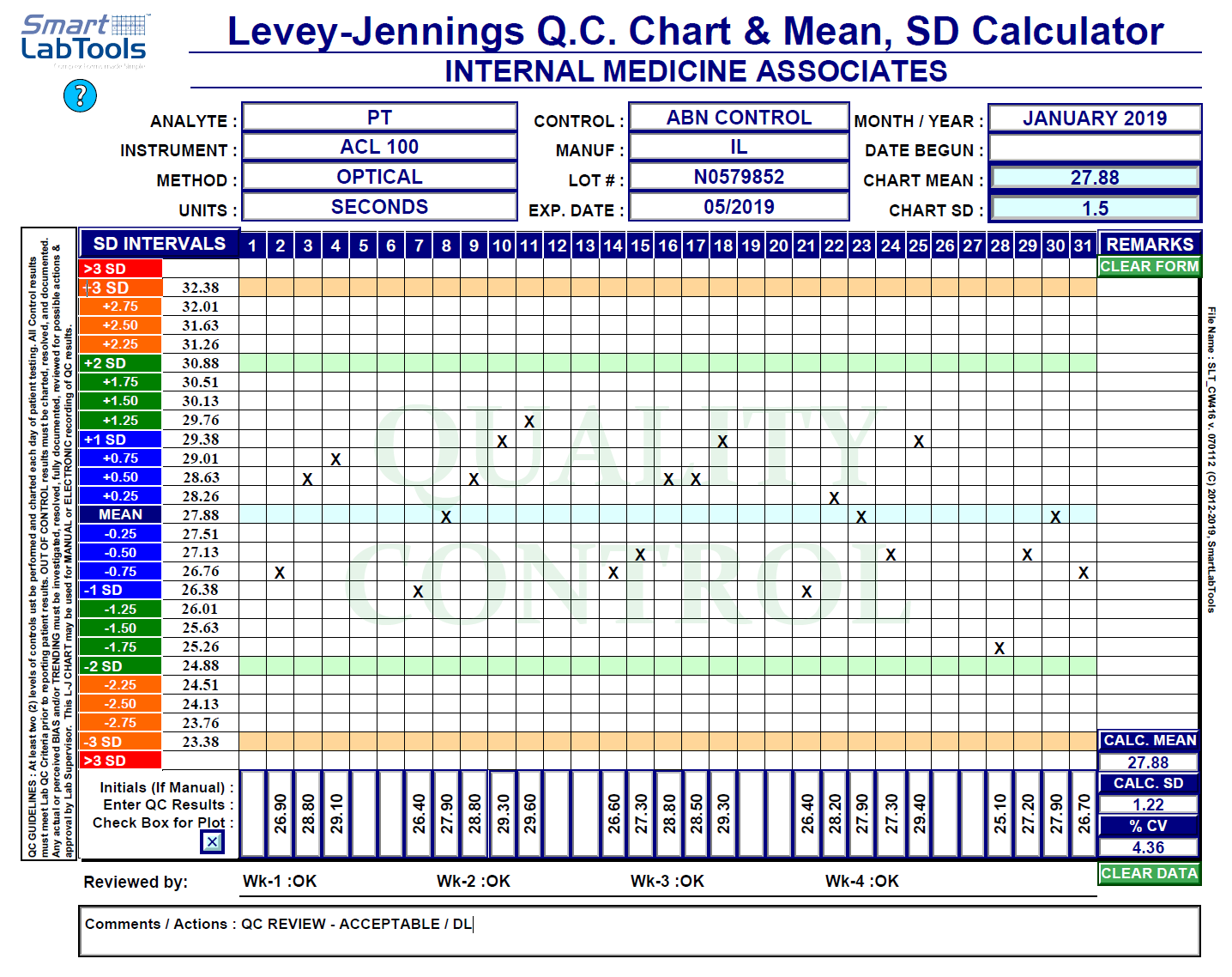 Printable Levey Jennings Chart