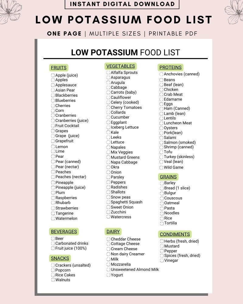 If you’re looking for a handy resource to help you manage your potassium intake, a printable low potassium food chart could be just what you need. This easy-to-use chart can help you make better food choices and keep your potassium levels in check.